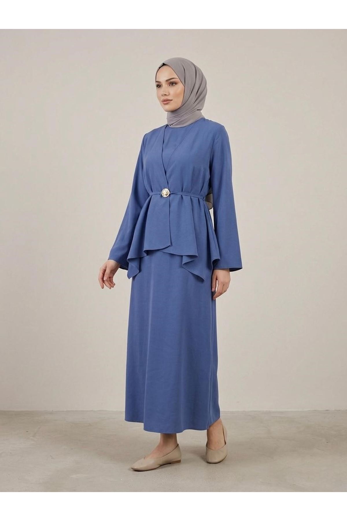 Aksesuar Detay İkili Elbise-İndigo