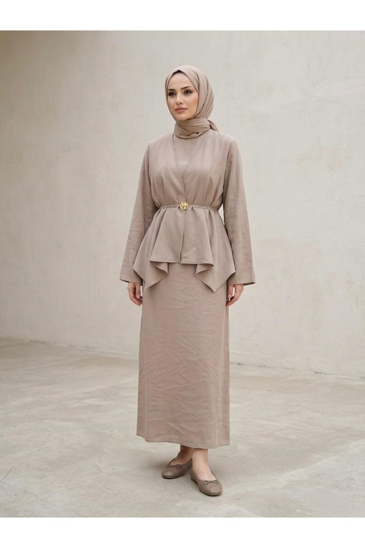 Aksesuar Detay İkili Elbise-Vizon