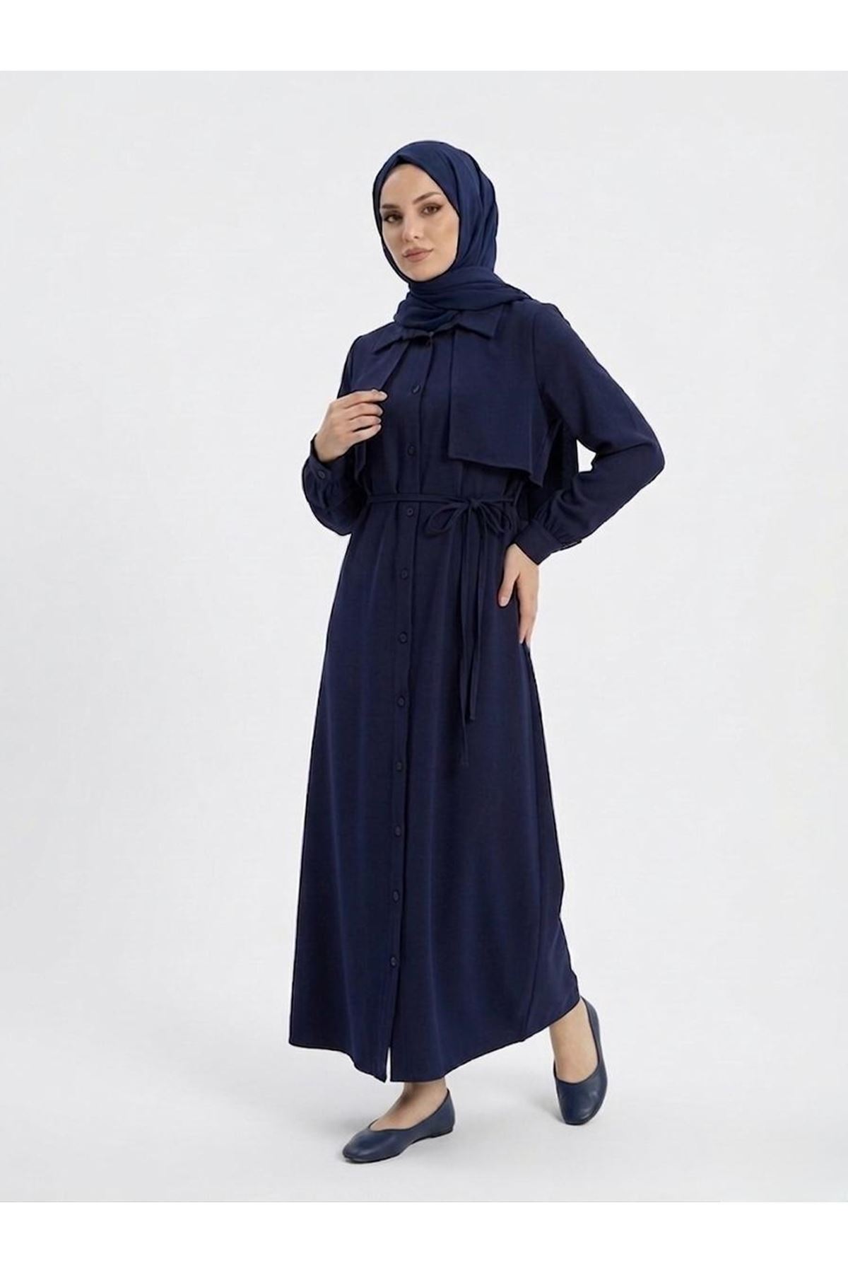 Aller Detay Patlı Elbise-Lacivert