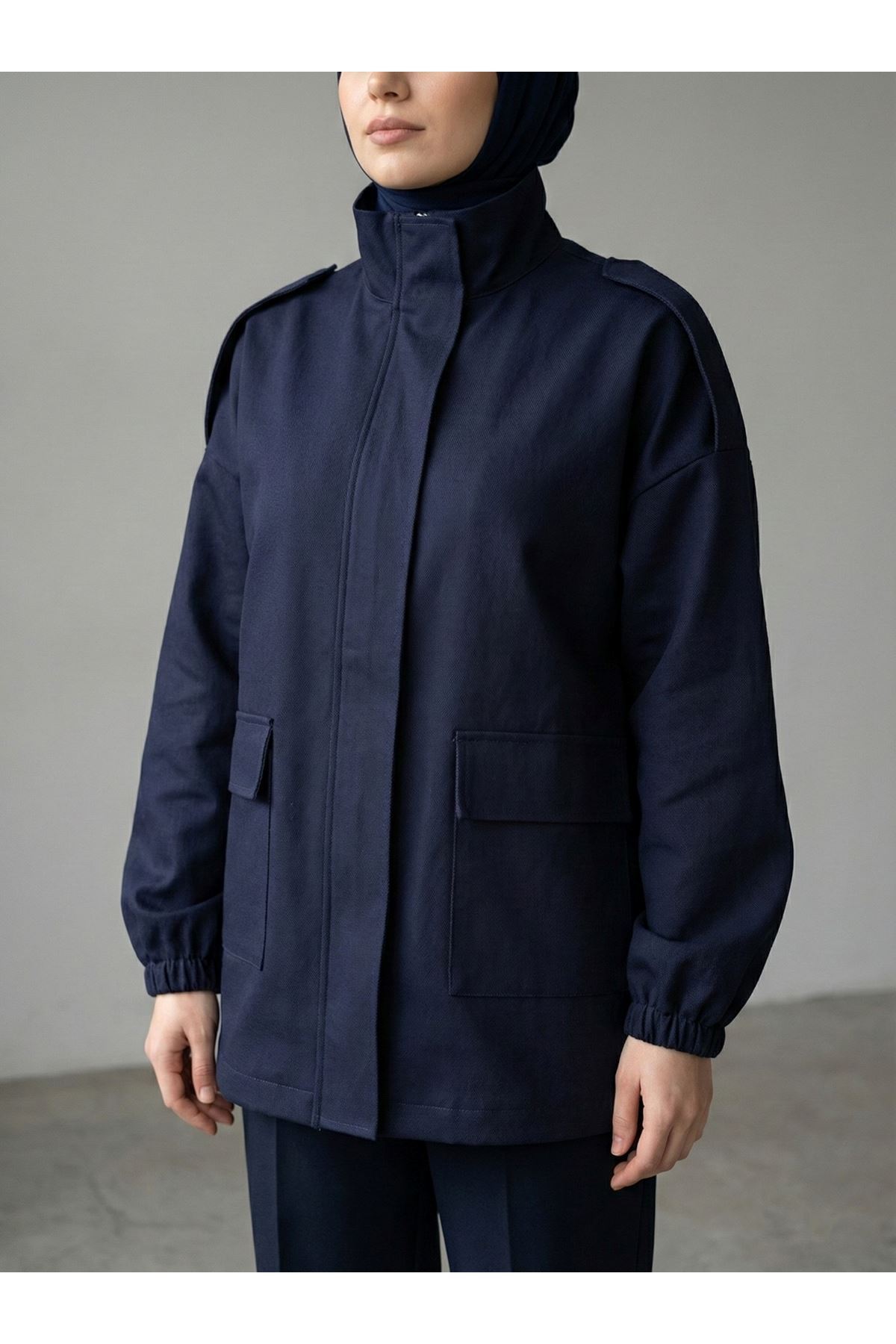Apoletli Cep Kapaklı Ceket-Lacivert