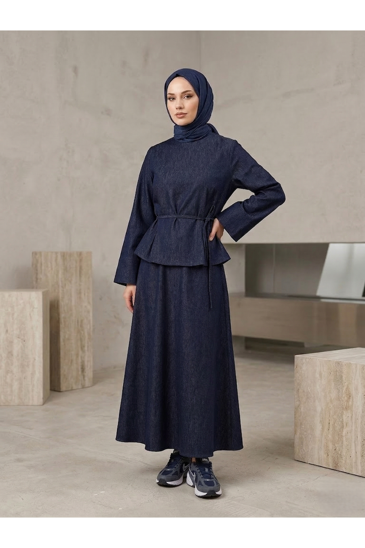 Arka Fermuar Detay Etekli Takım