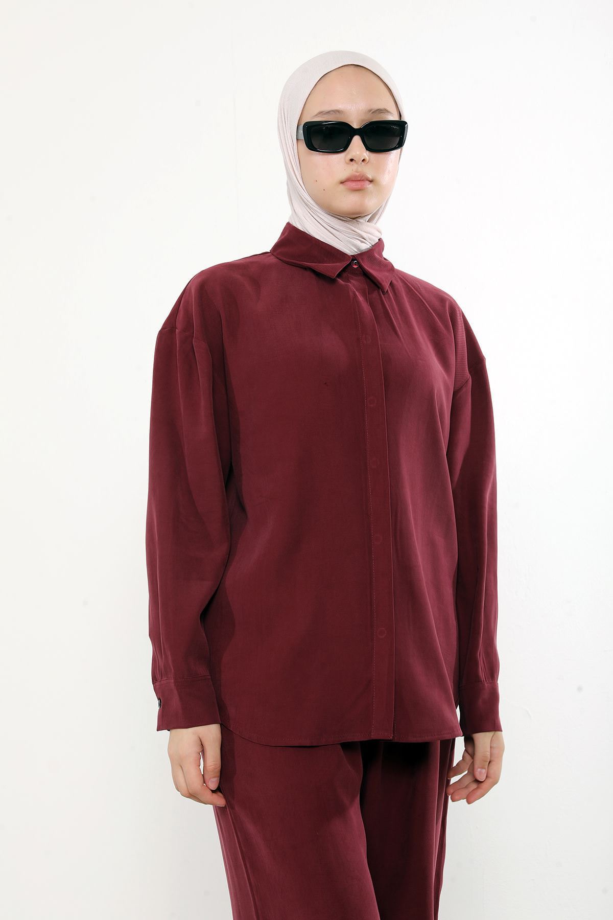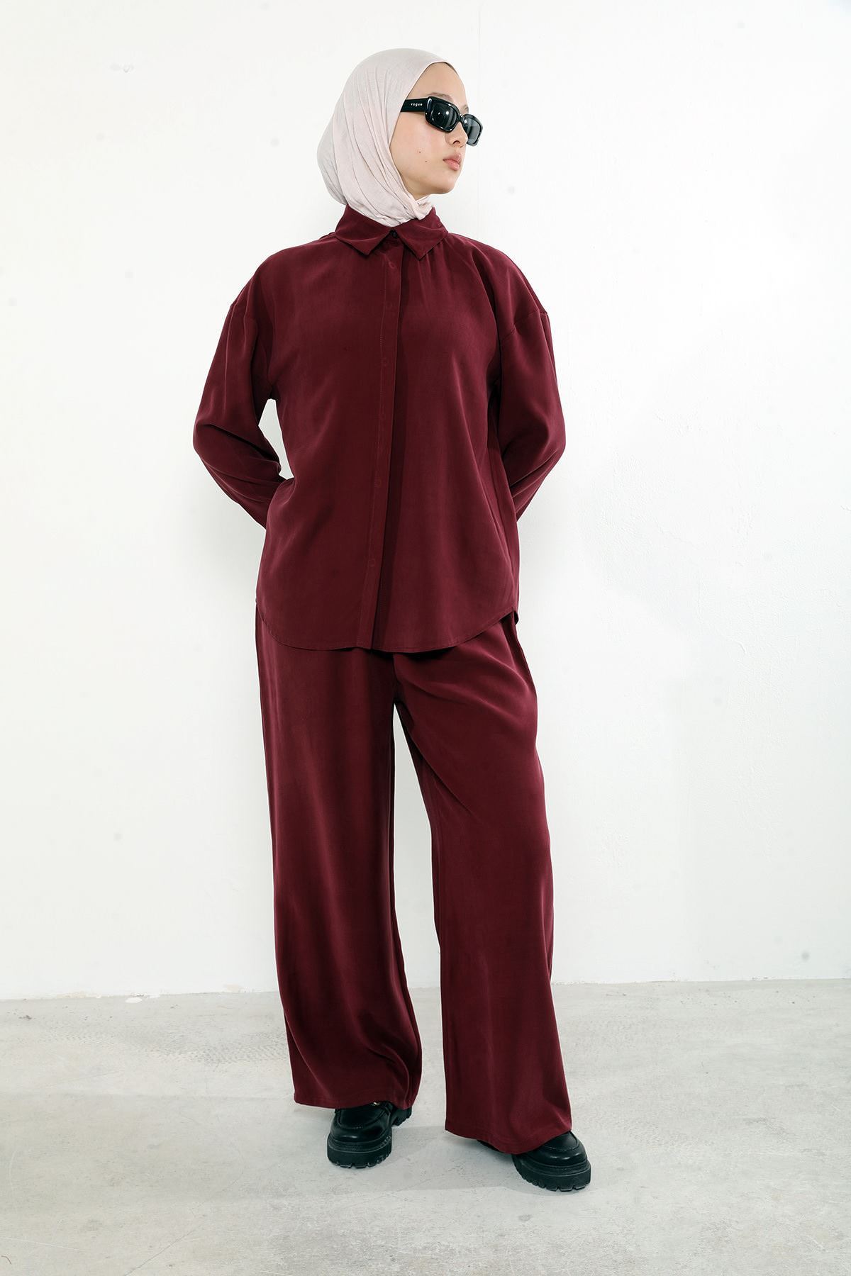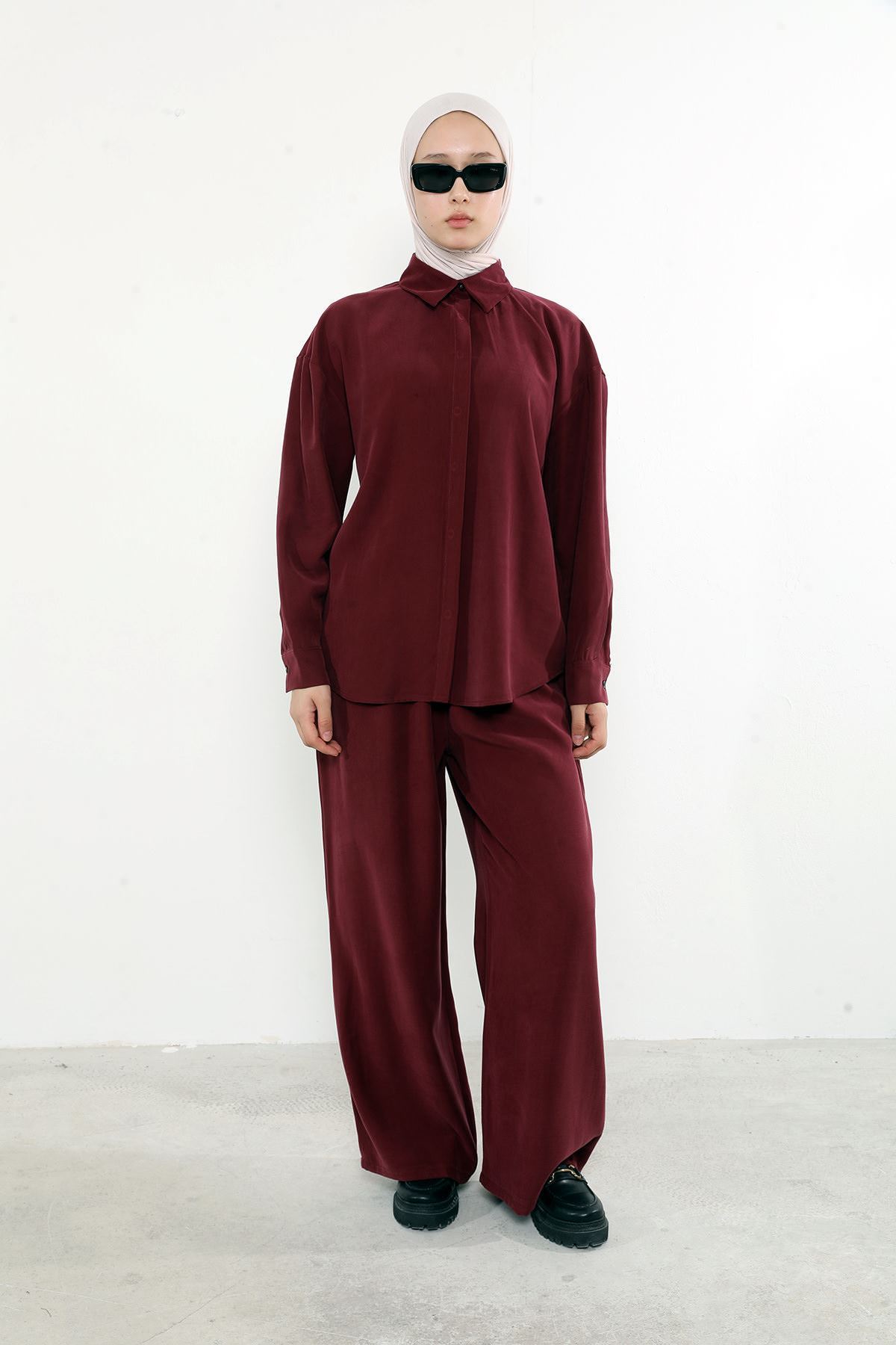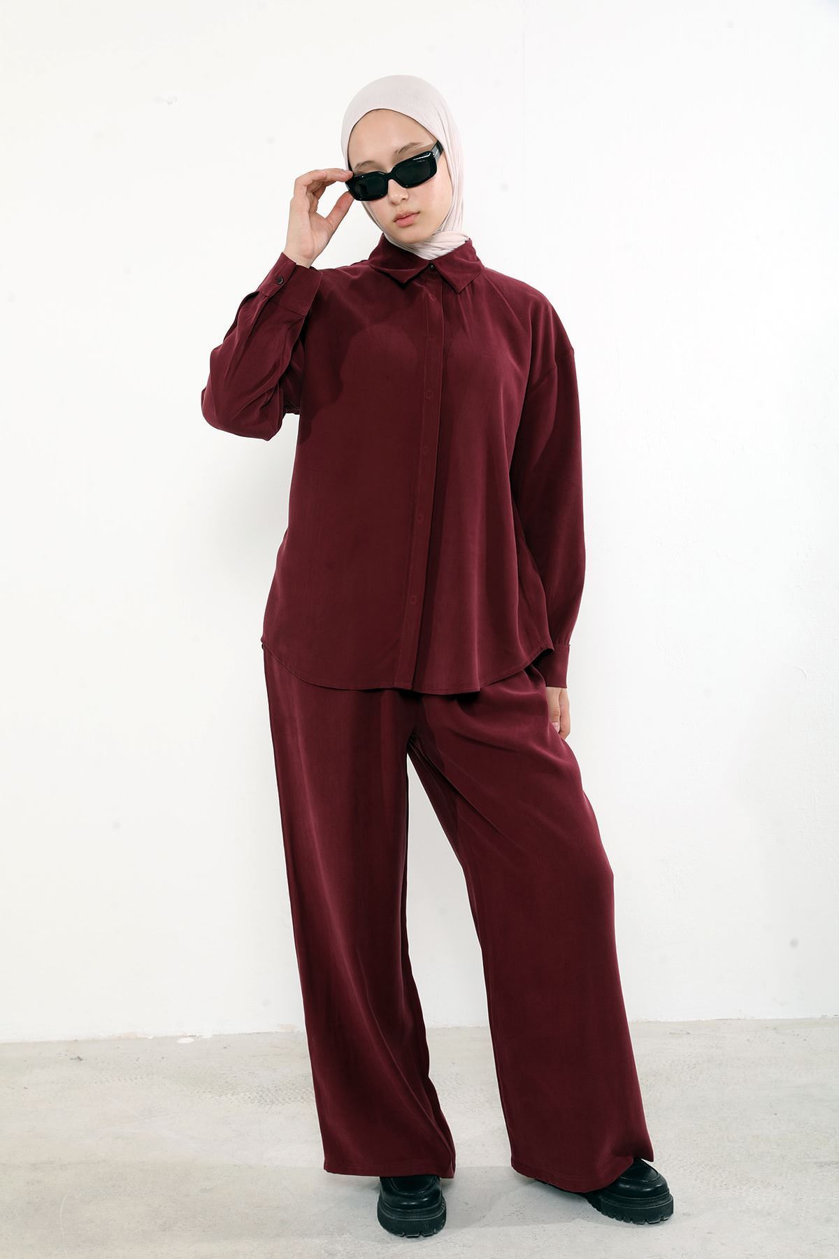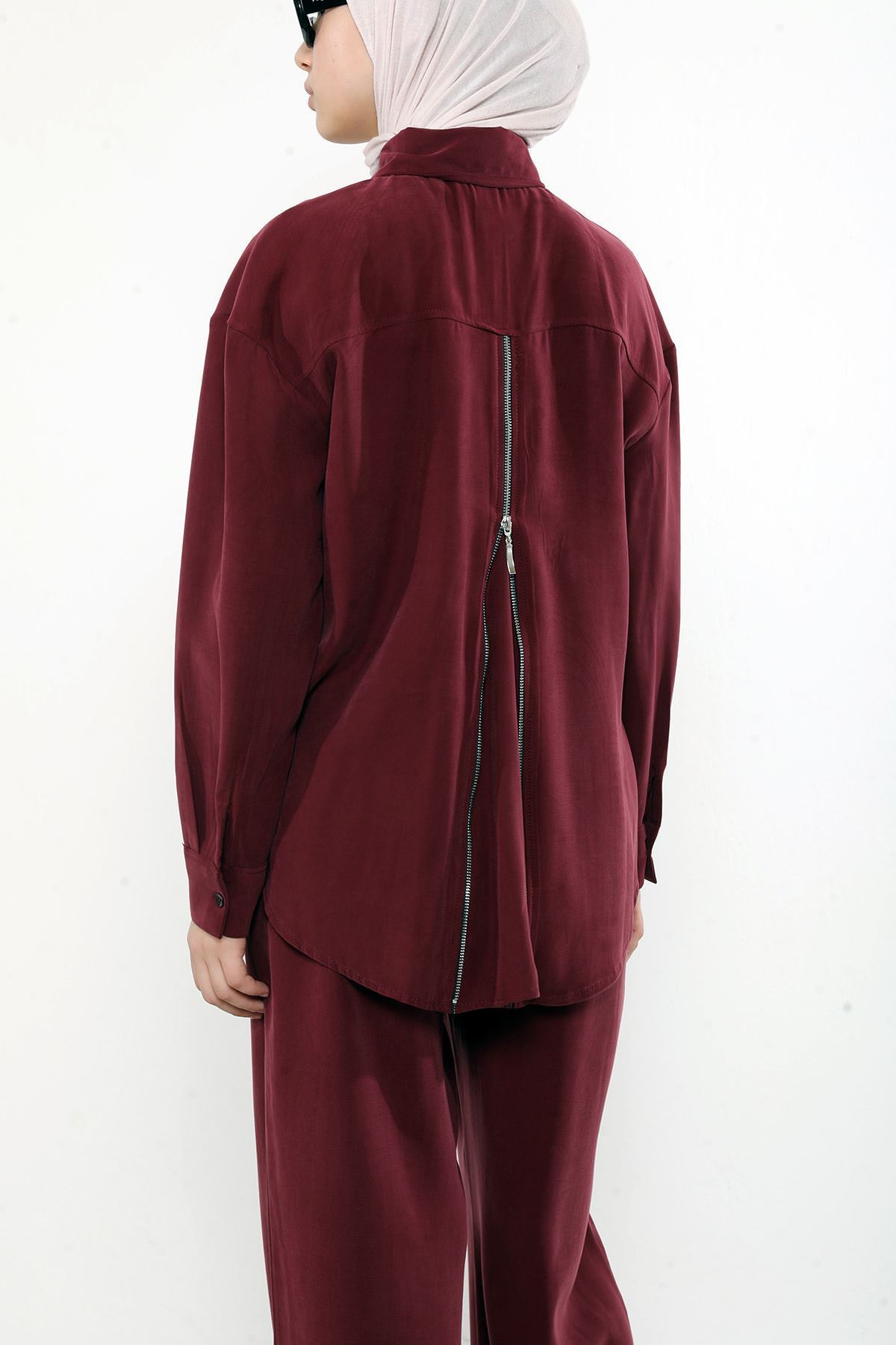 Arka Fermuar Detay Pantolonlu Takım-Bordo
