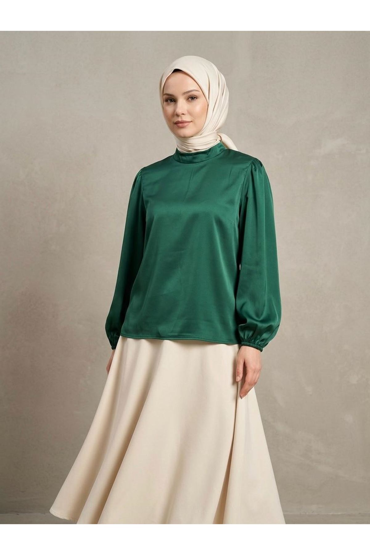 Arka Fermuar Detay Saten Tunik