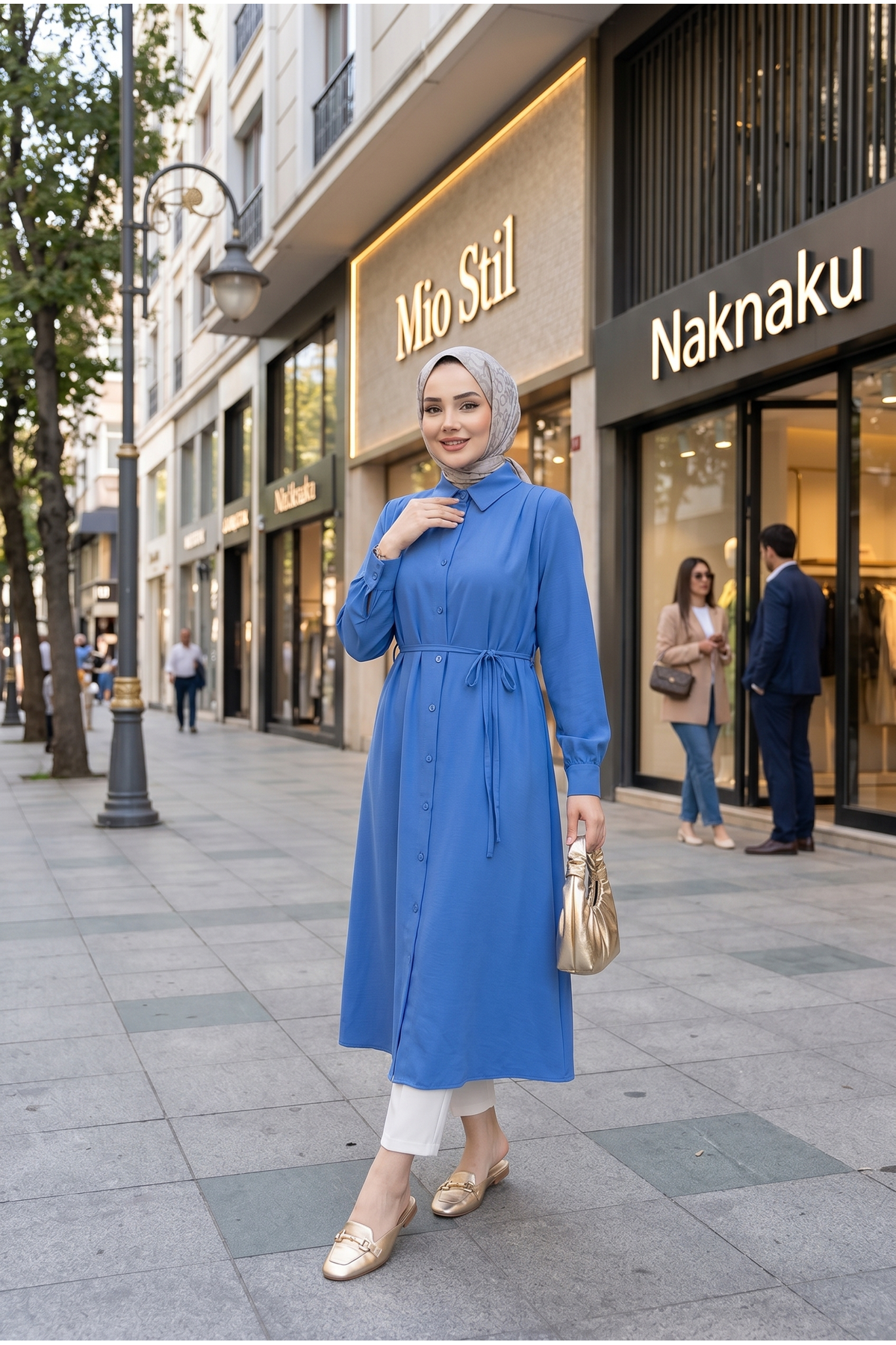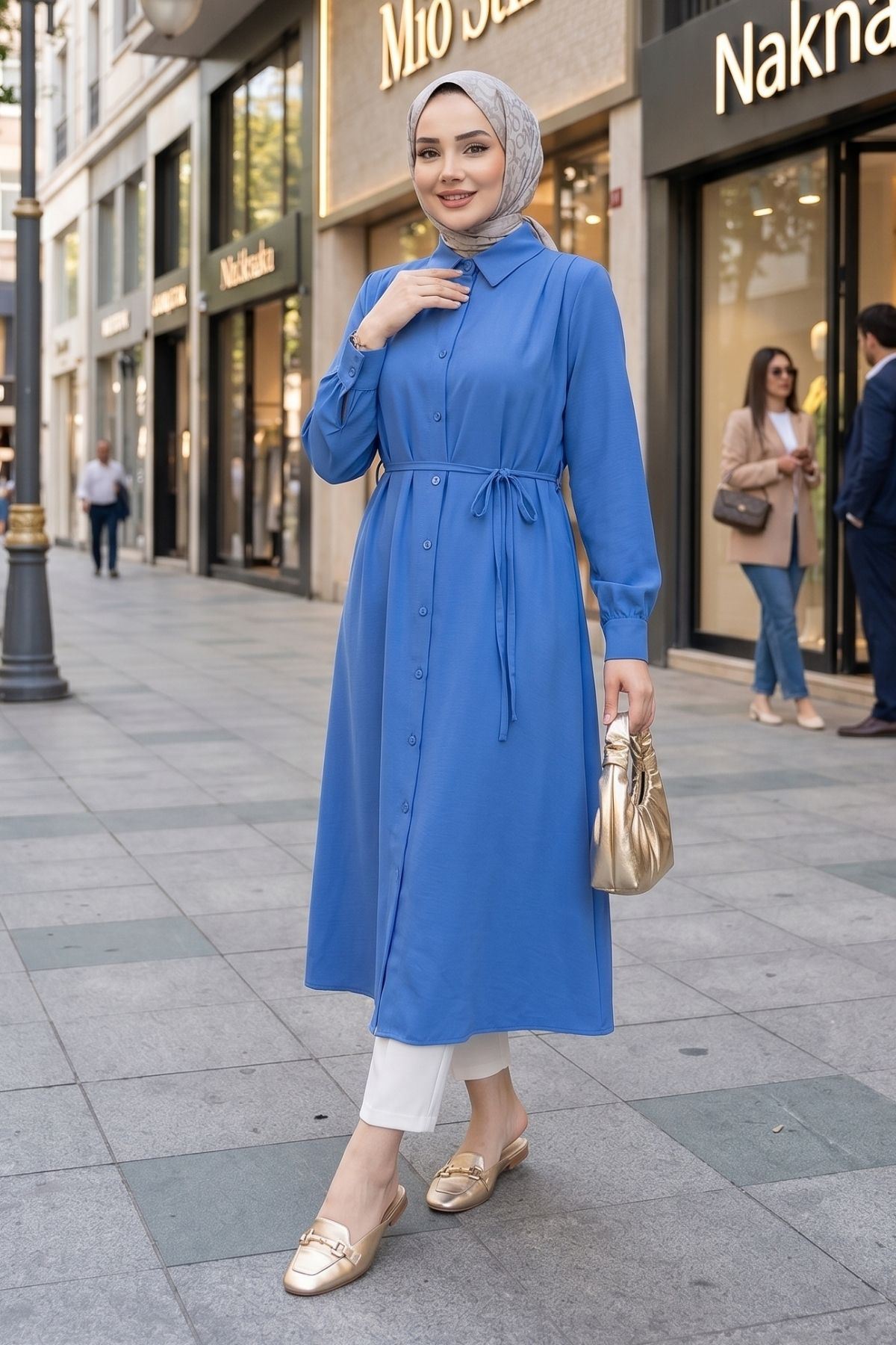 Arka Roba Omuz Pile Uzun Tunik