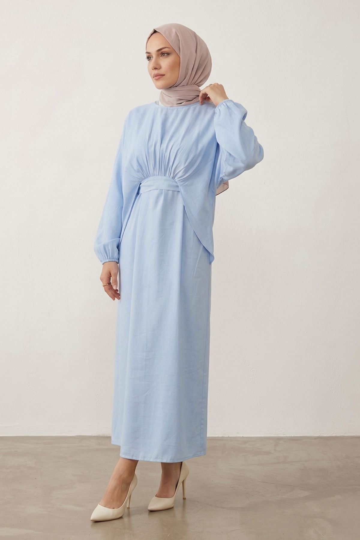 Bağlamalı İkili Elbise-Bebe Mavisi