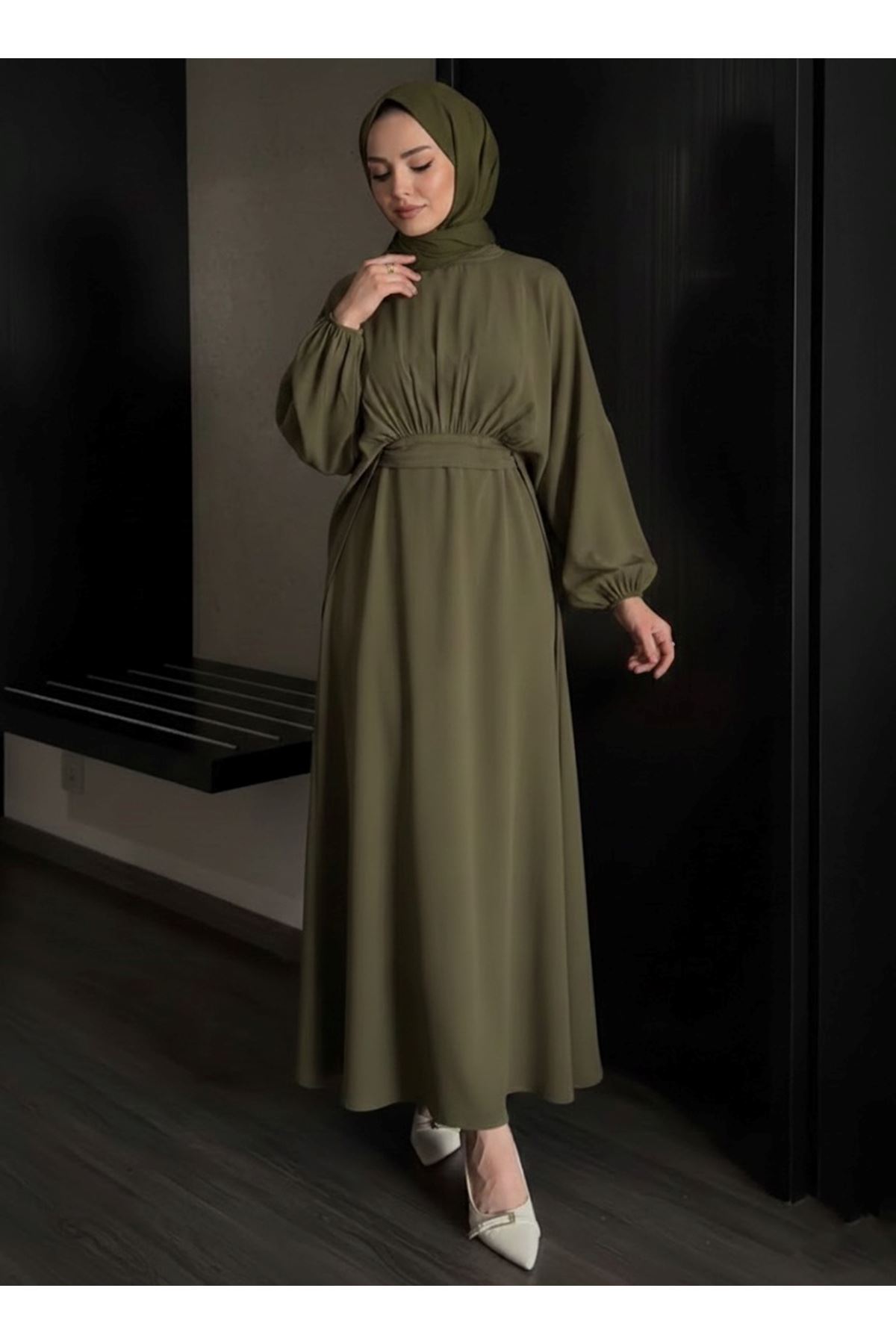 Bağlamalı İkili Elbise-Haki