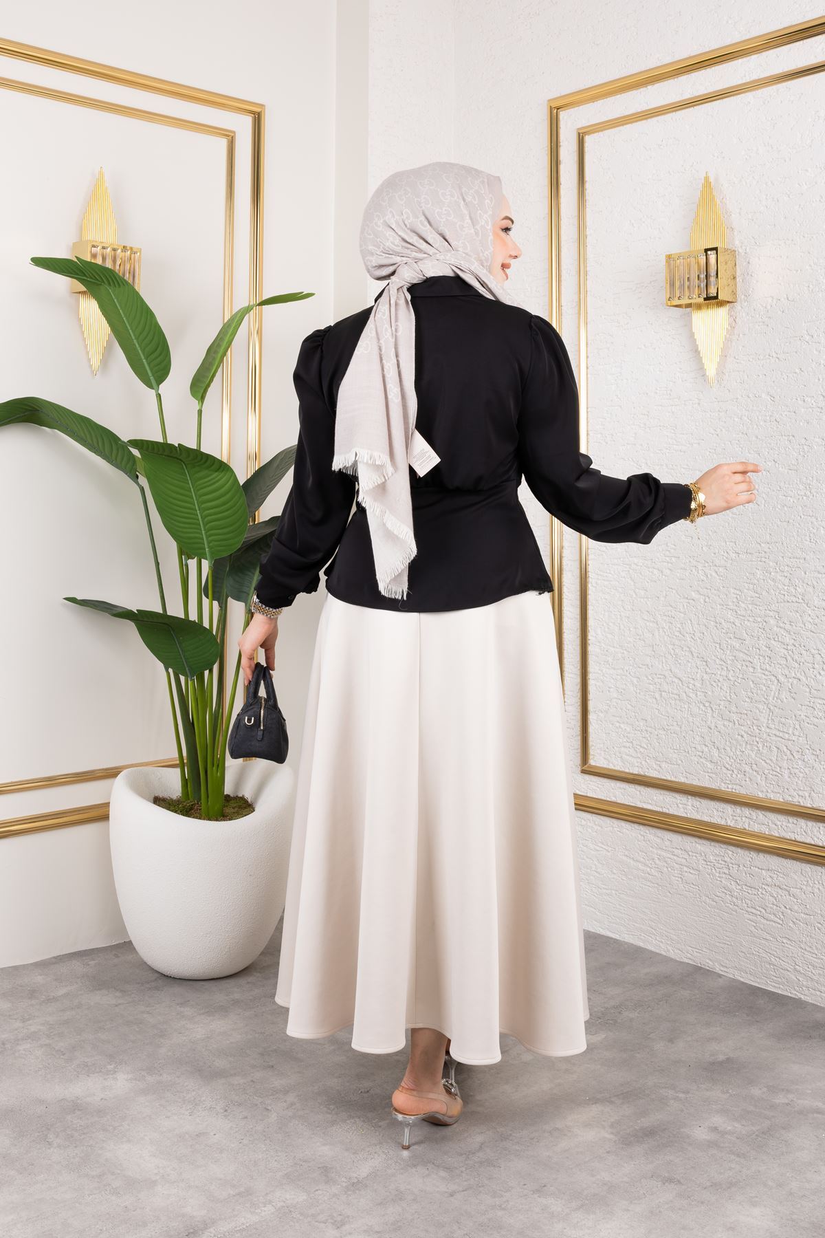 Bel Büzgülü Tunik-Siyah