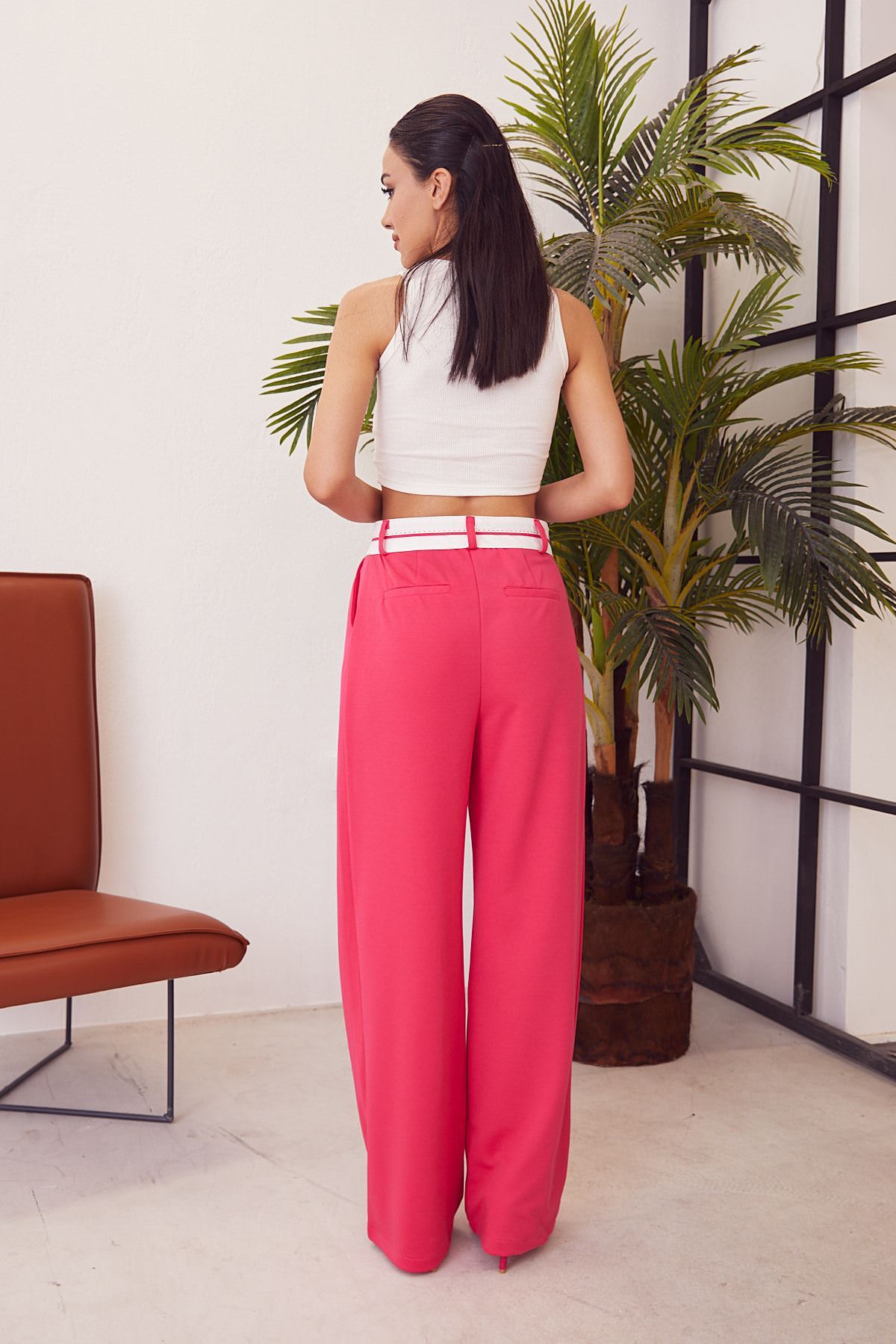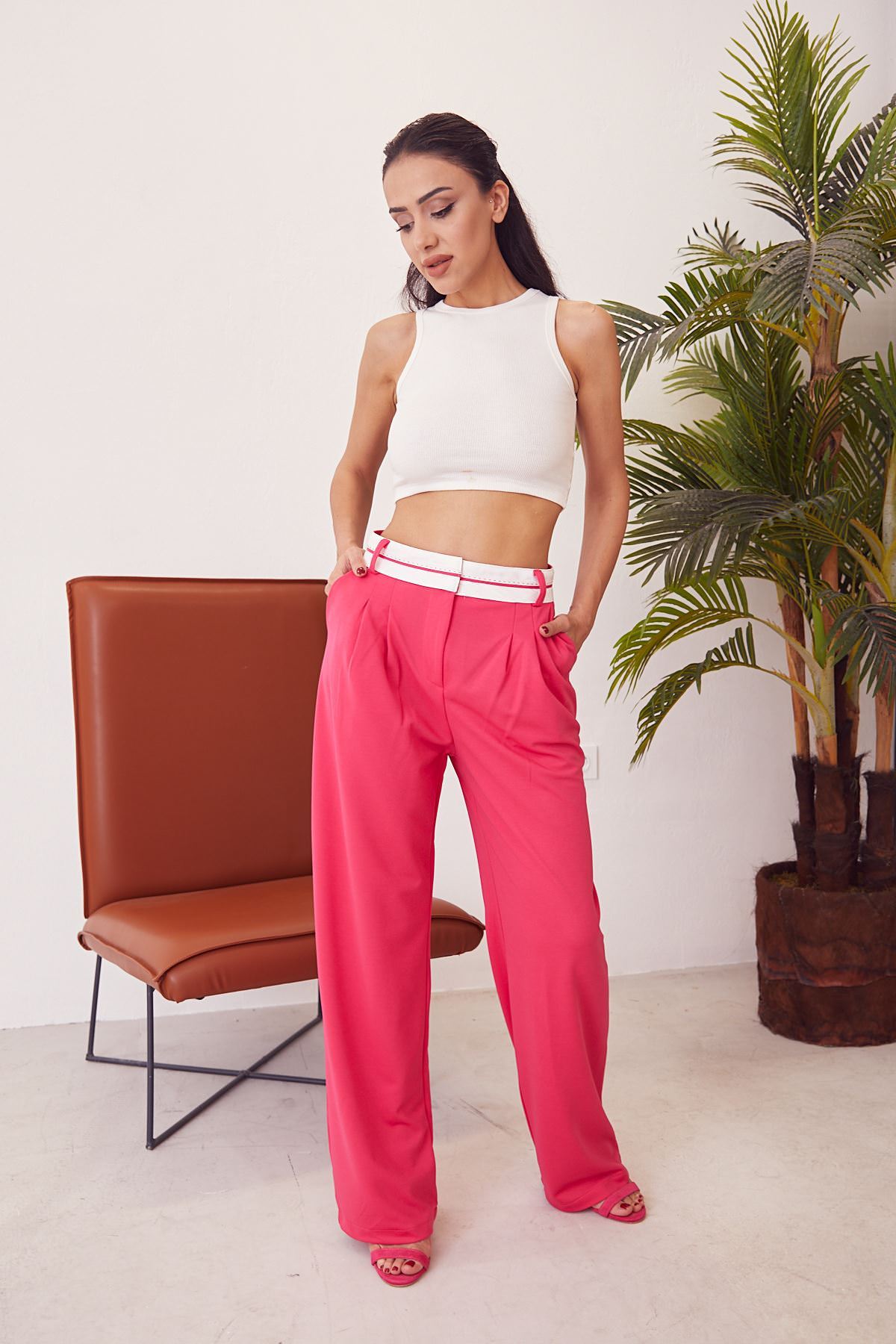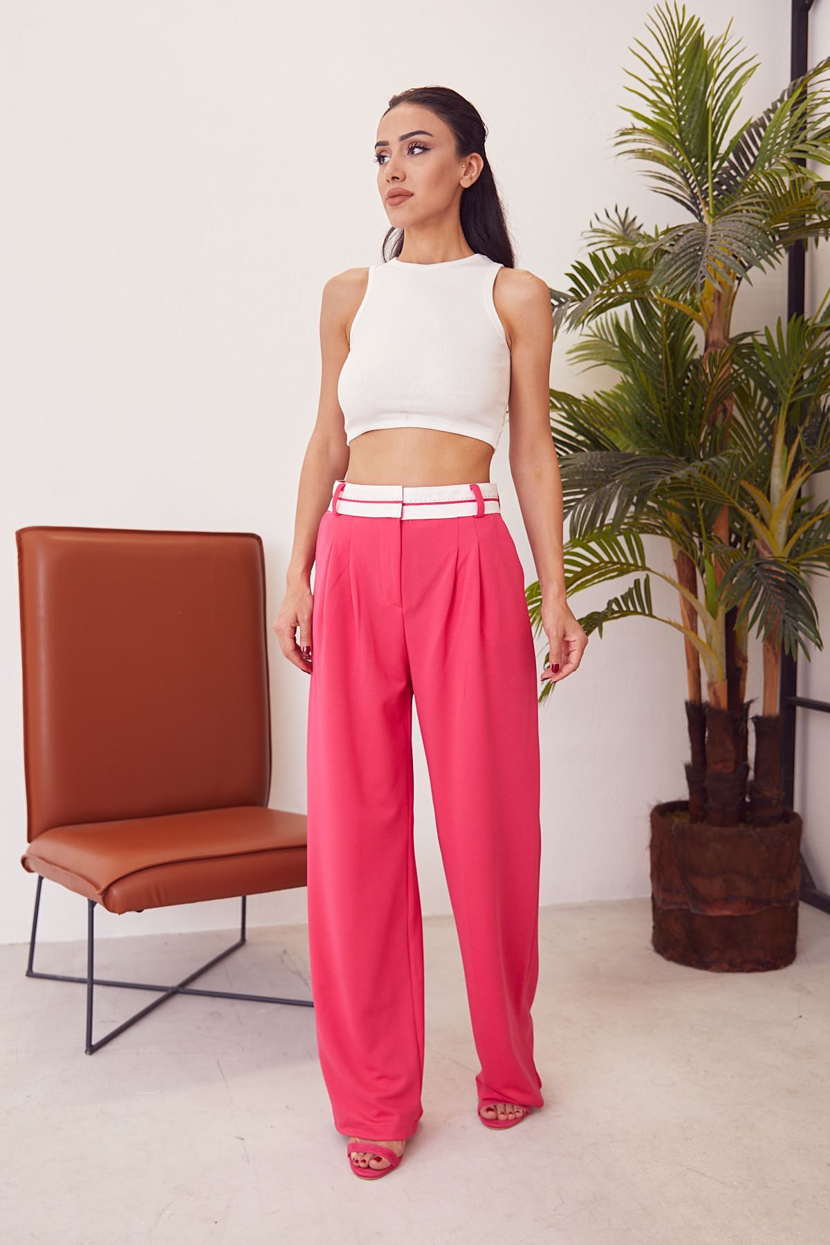 Bel Detay Bol Pantolon-Fuşya