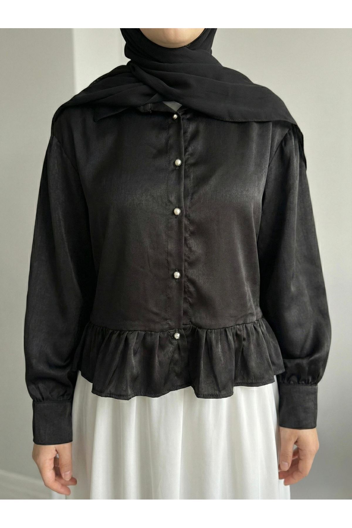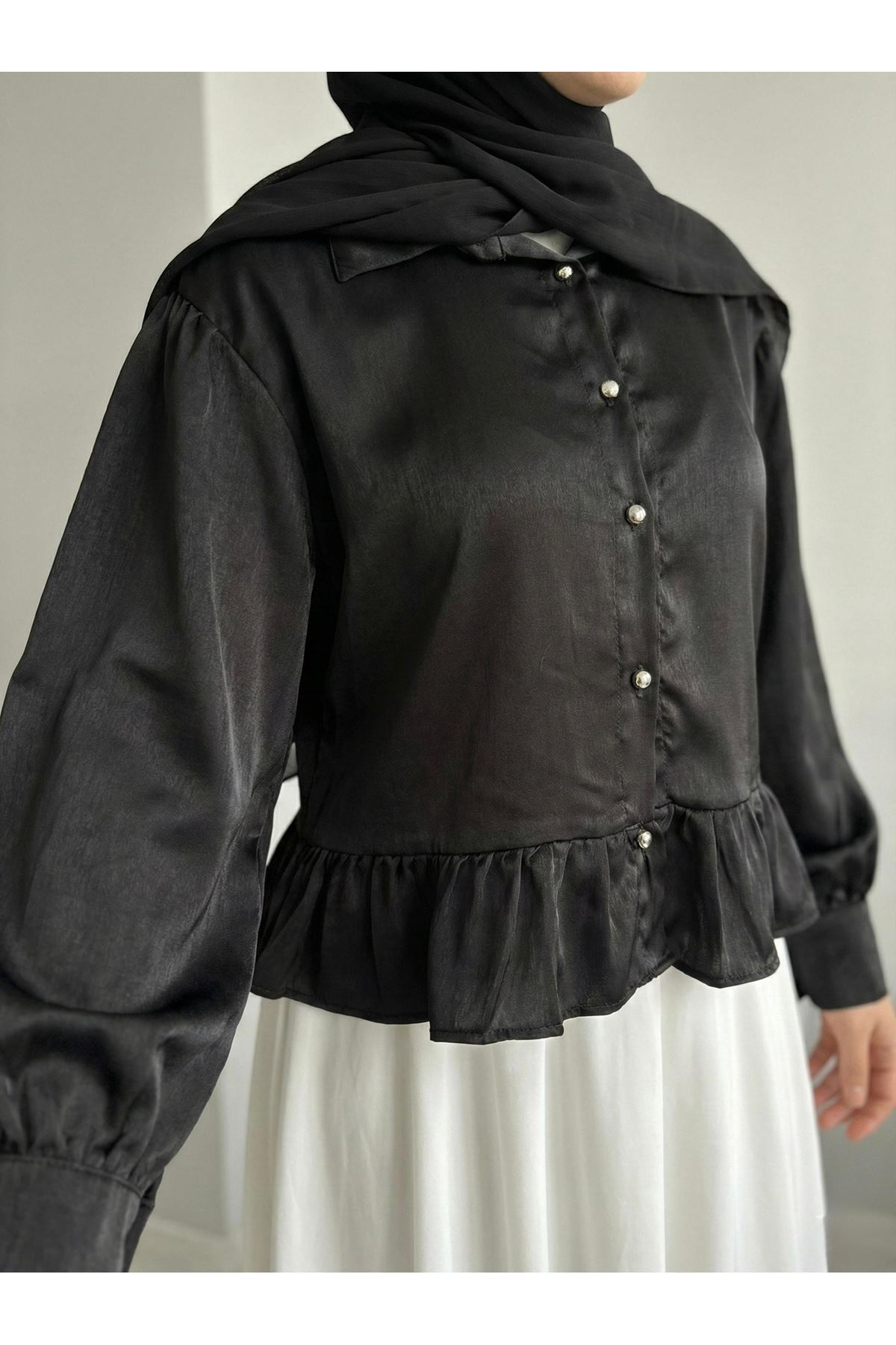 Büzgü Detay Tunik-Siyah