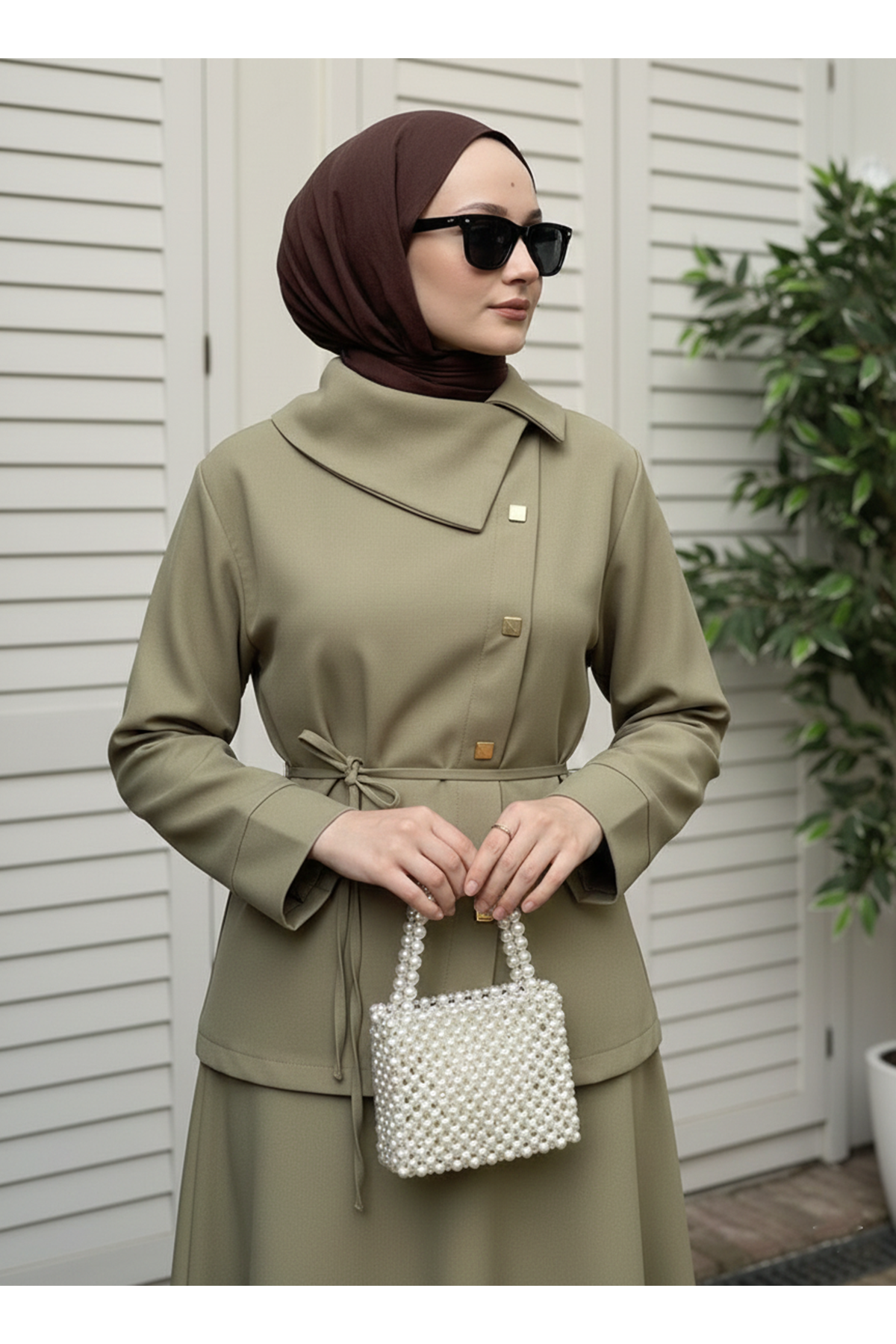 Çapraz Düğmeli Etekli Takım-Açık Haki