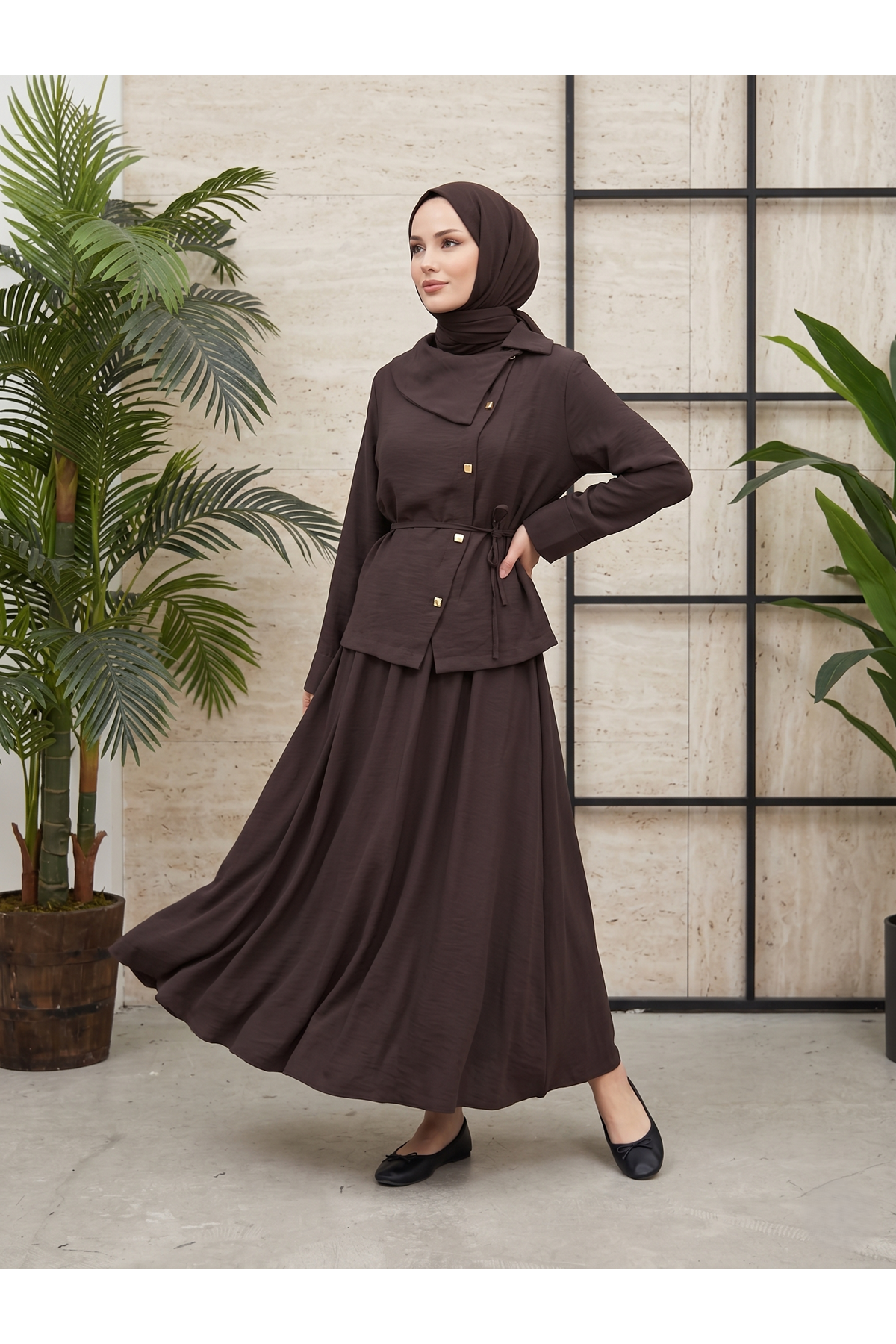 Çapraz Düğmeli Etekli Takım-Kahve