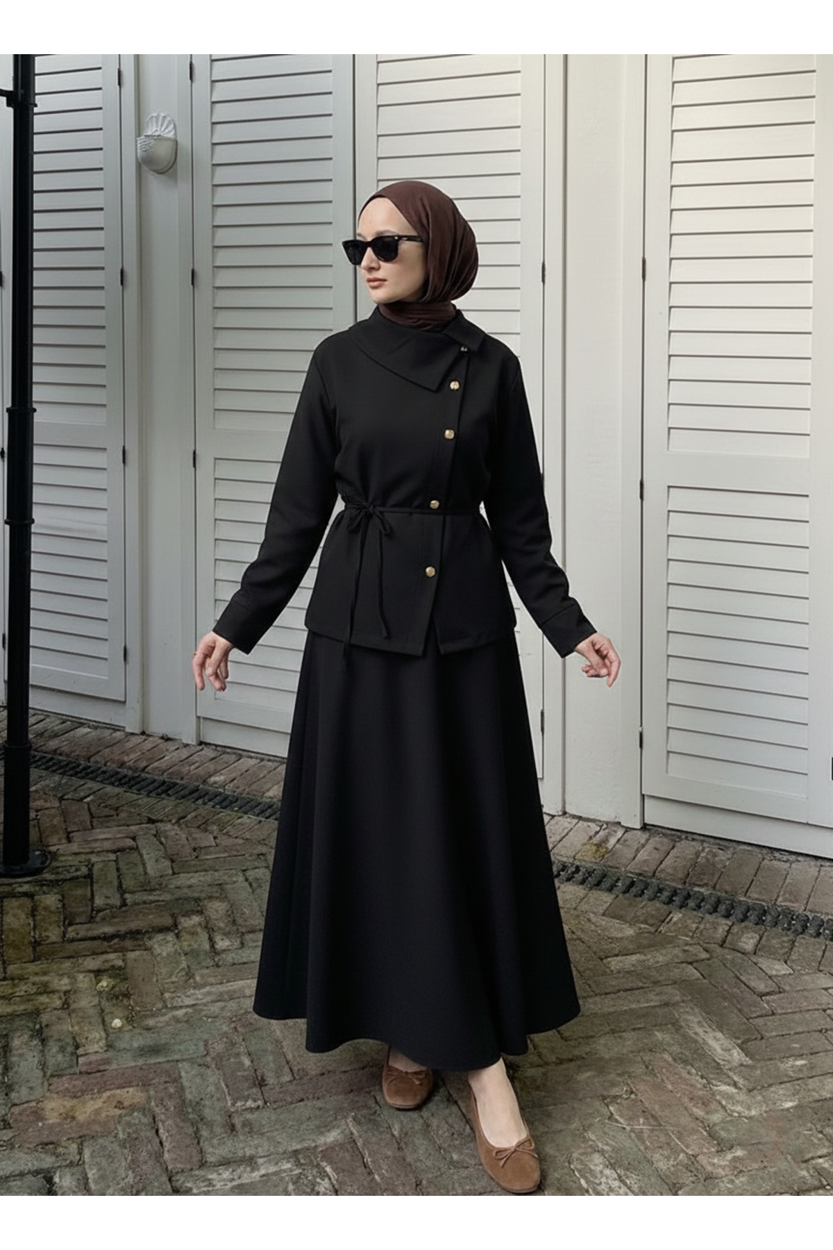 Çapraz Düğmeli Etekli Takım-Siyah