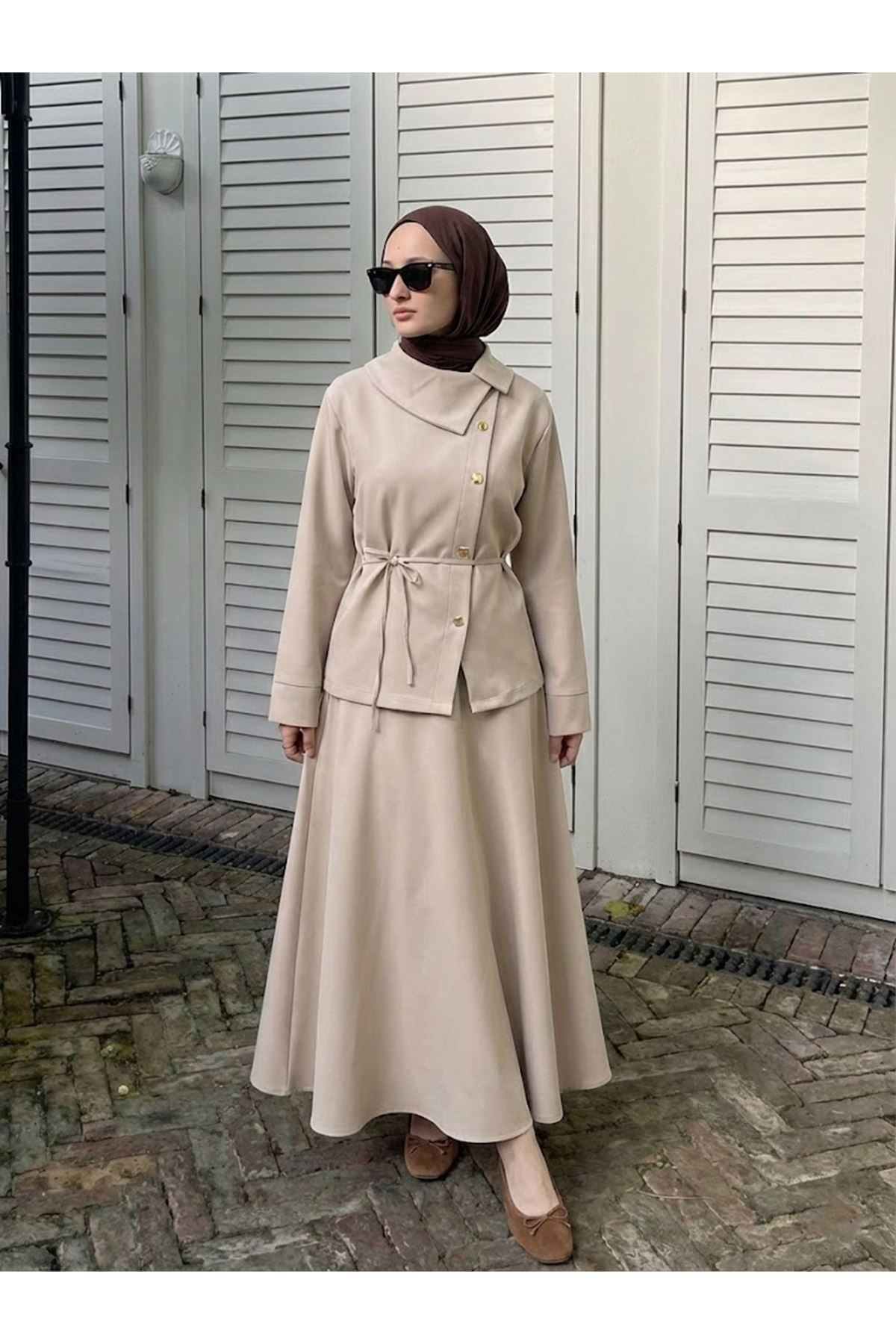 Çapraz Düğmeli Etekli Takım-Taş