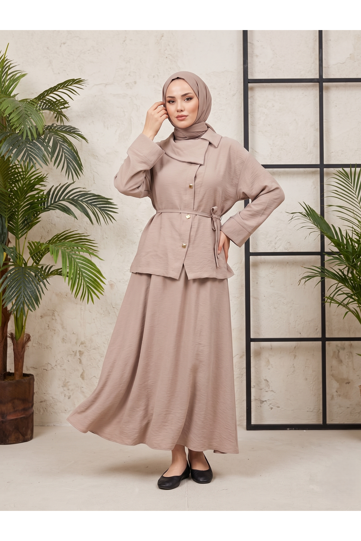Çapraz Düğmeli Etekli Takım-Vizon