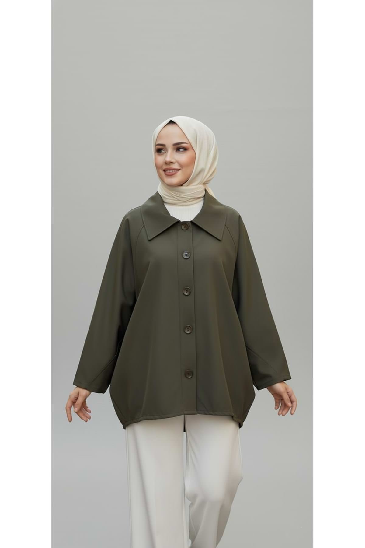 Casual Relax Fit Giy Çık Bondit Hırka-Haki