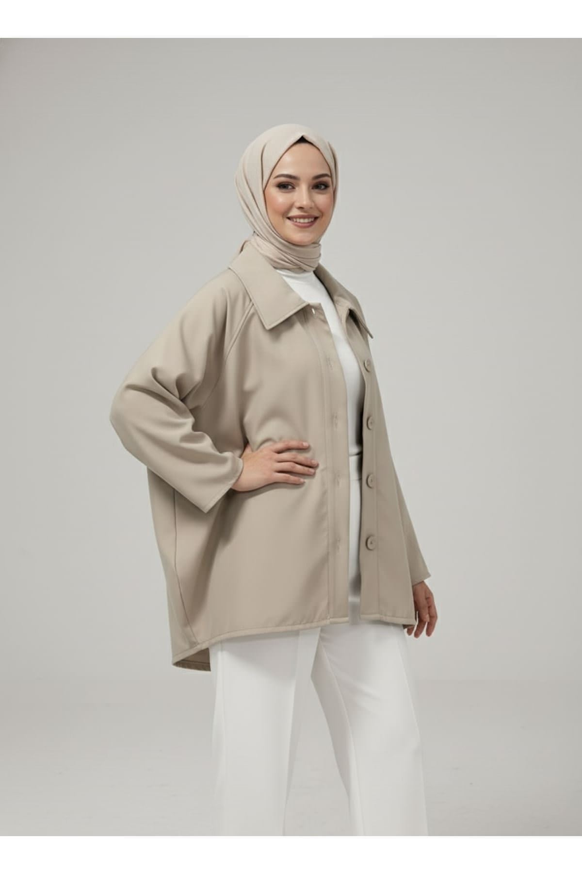 Casual Relax Fit Giy Çık Bondit Hırka-Taş