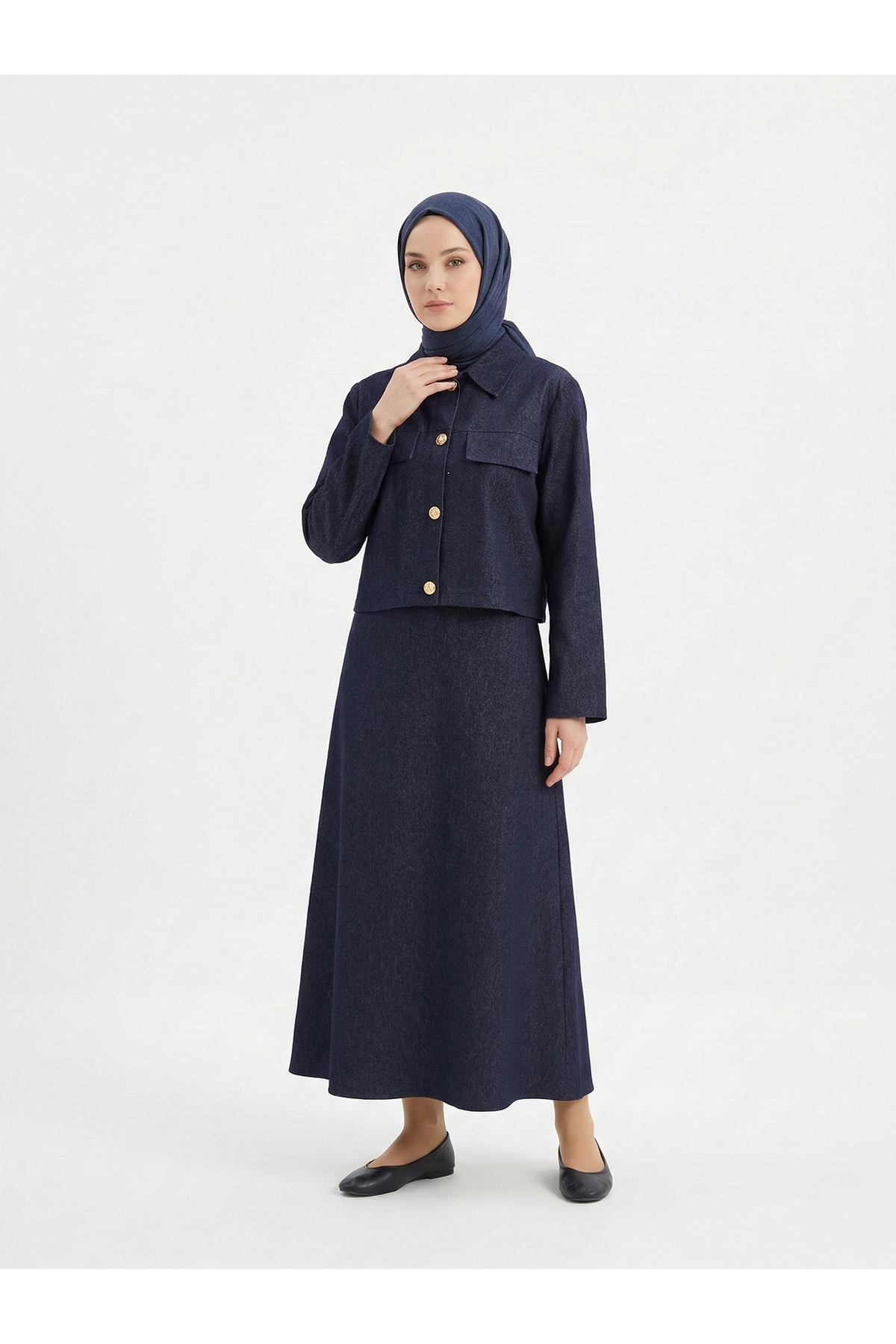Ceket Düğme Detay İkili Elbise-Lacivert