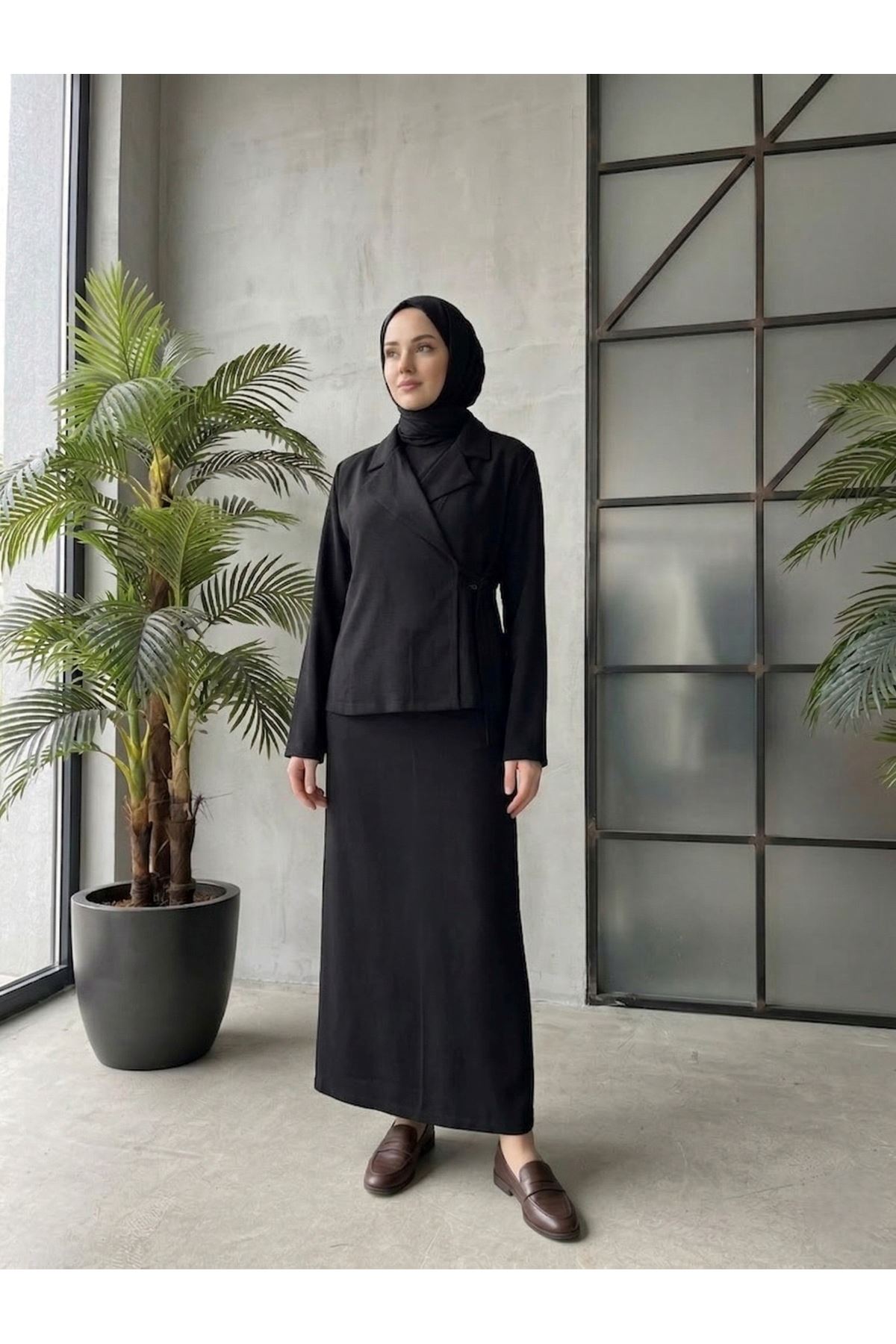 Ceketli İkili Elbise-Siyah