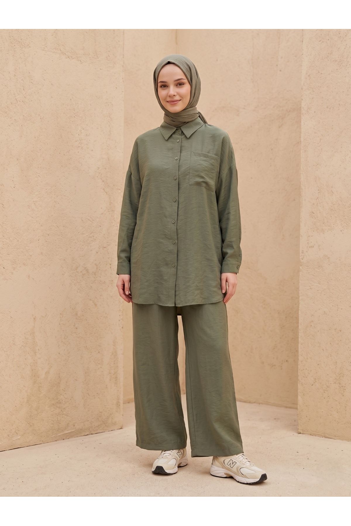 Cep Detay Pantolonlu Takım-Haki