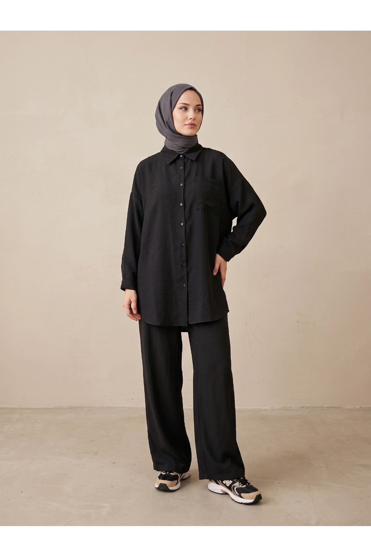 Cep Detay Pantolonlu Takım-Siyah