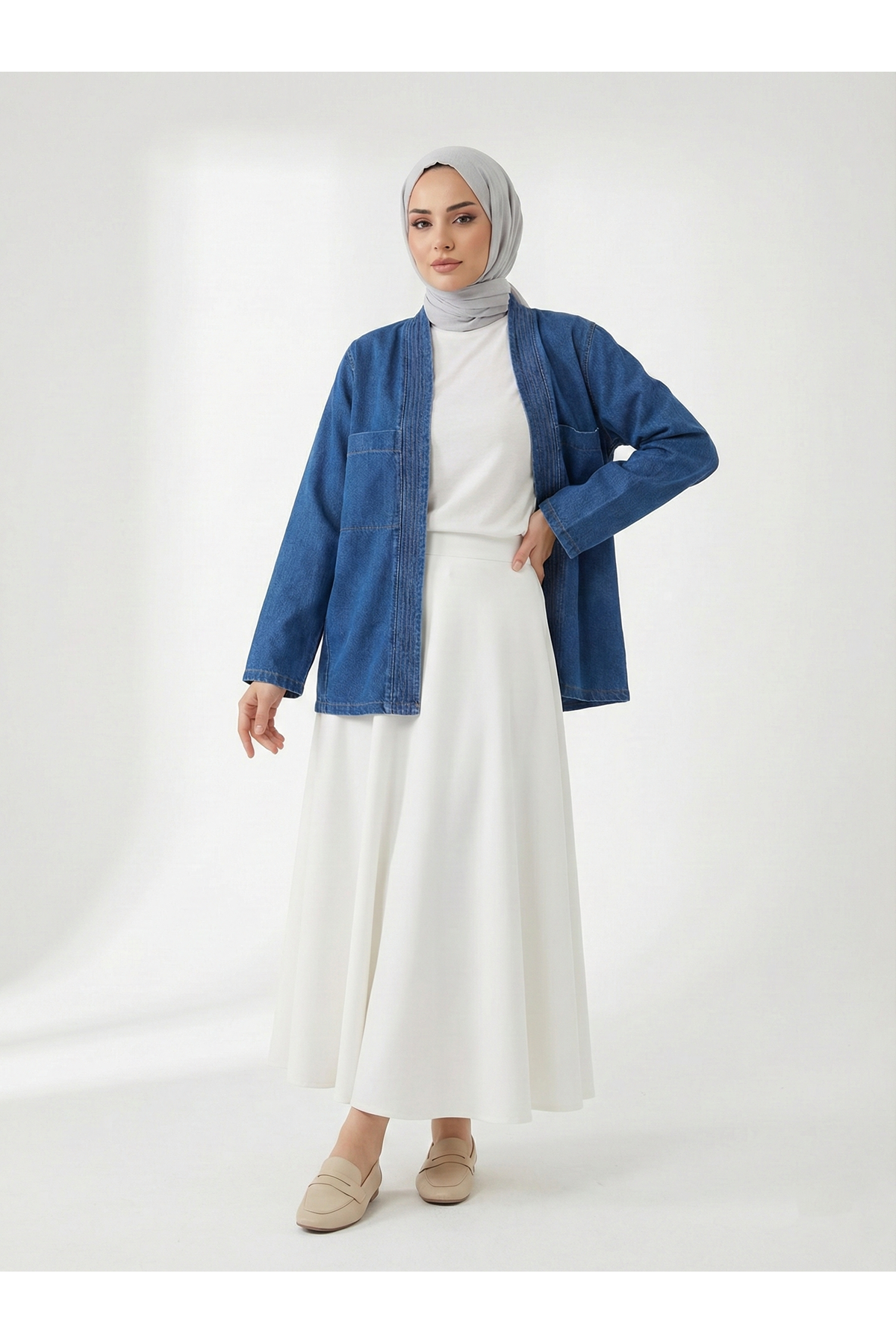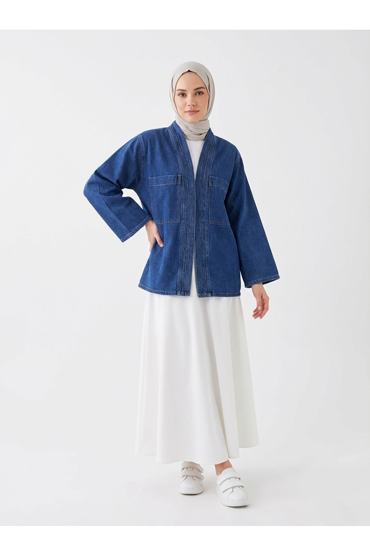 Cep Detaylı Sıra Dikişli Kot Ceket