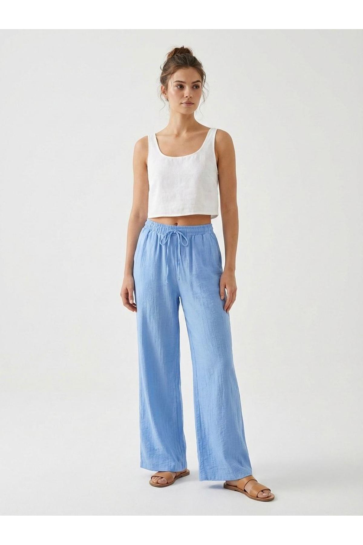 Cepli İp Detay Pantolon-Mavi