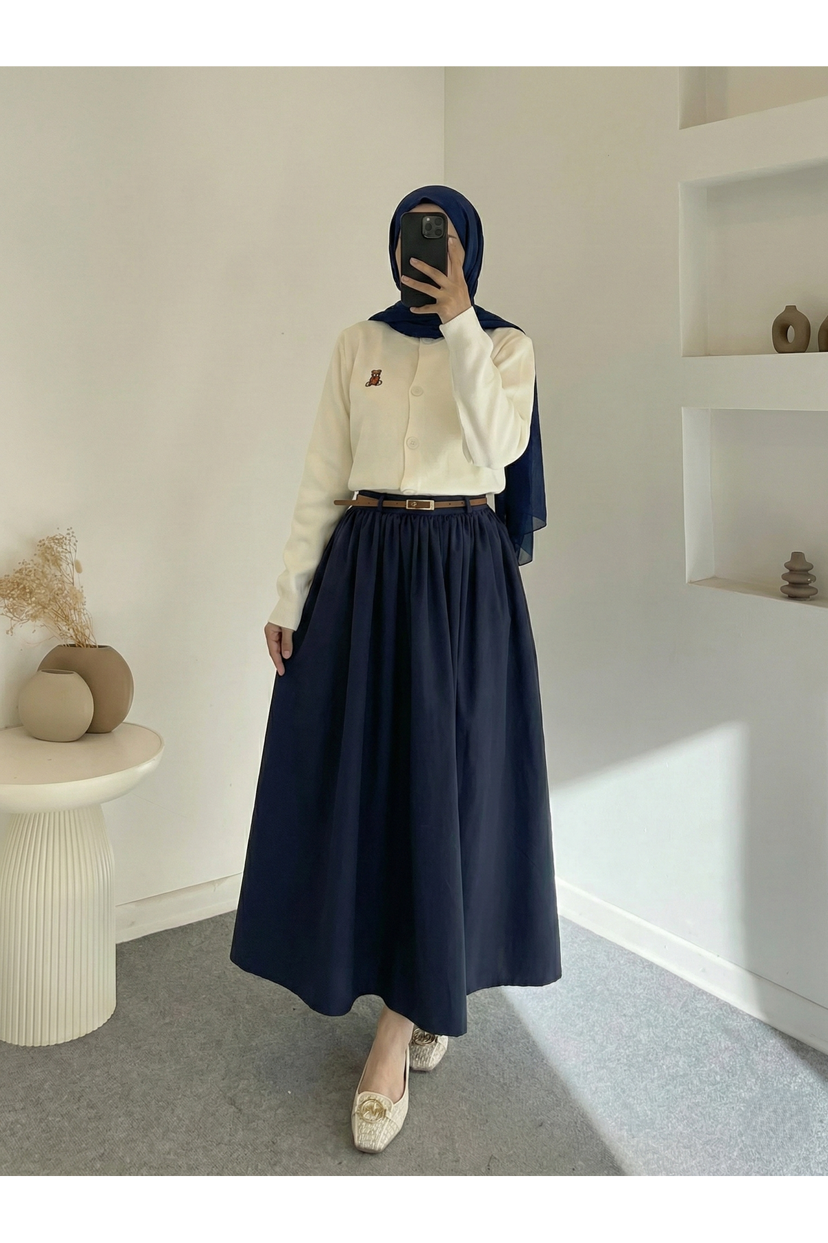 Cepli Kemerli Büzgülü Etek-Lacivert