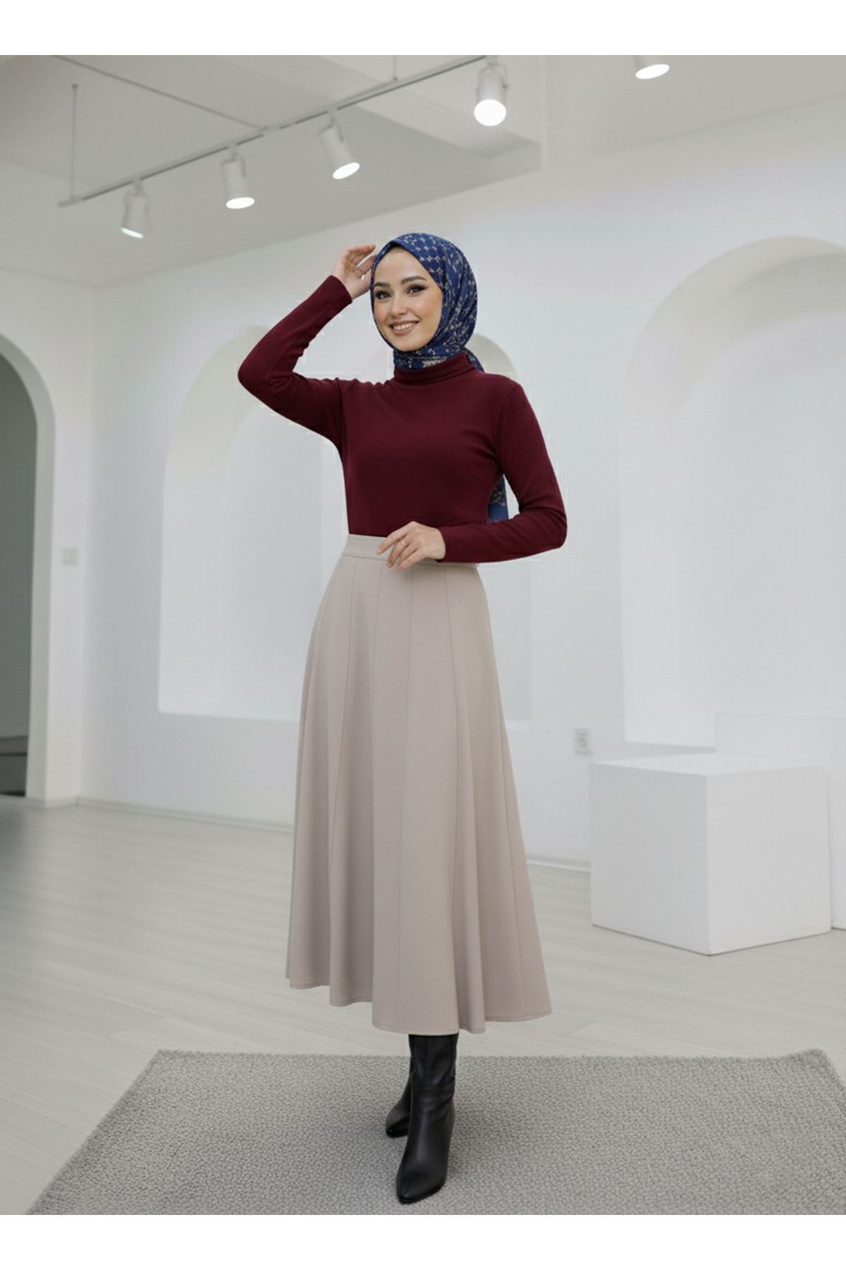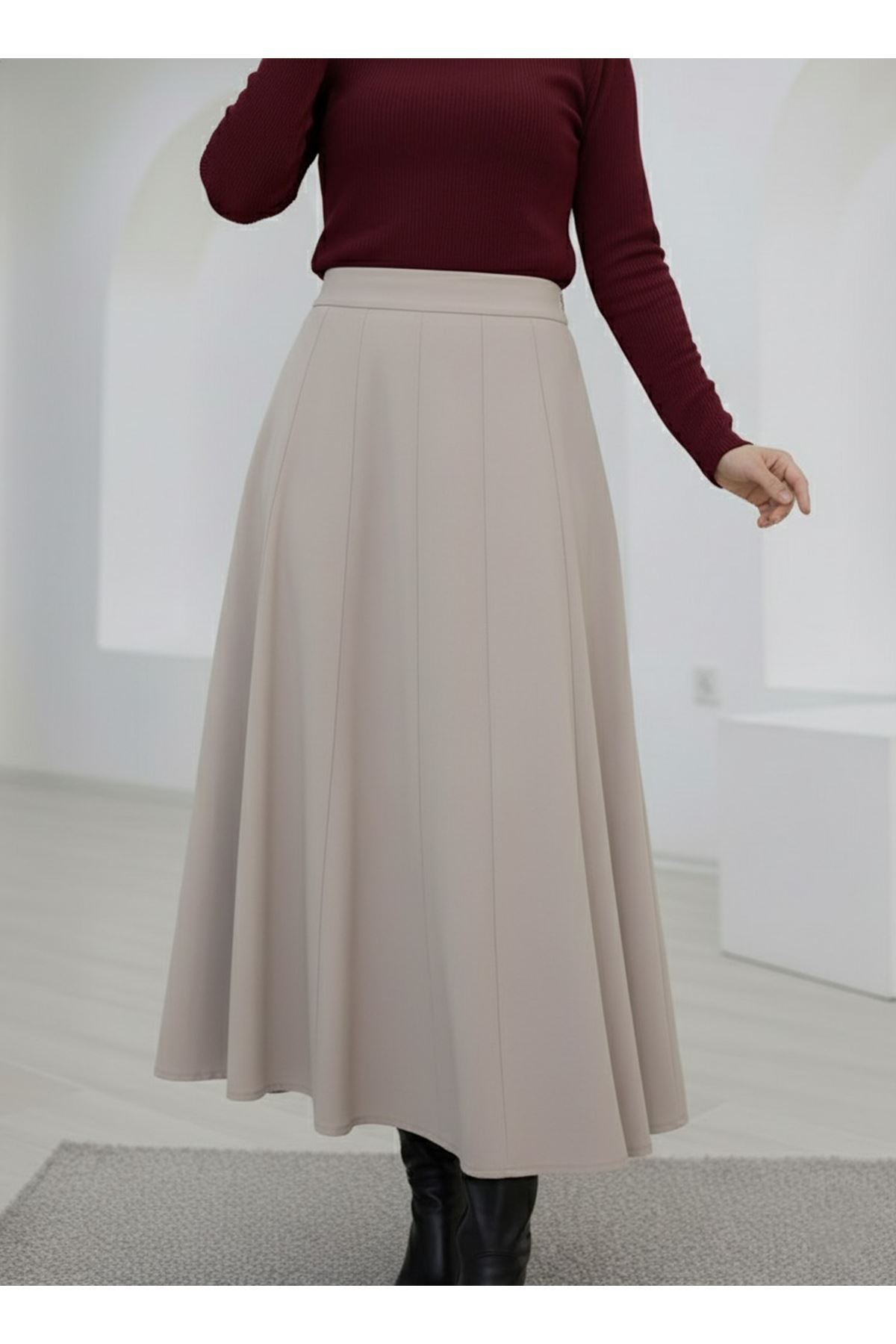 Çıma Detaylı Parçalı Etek-Taş