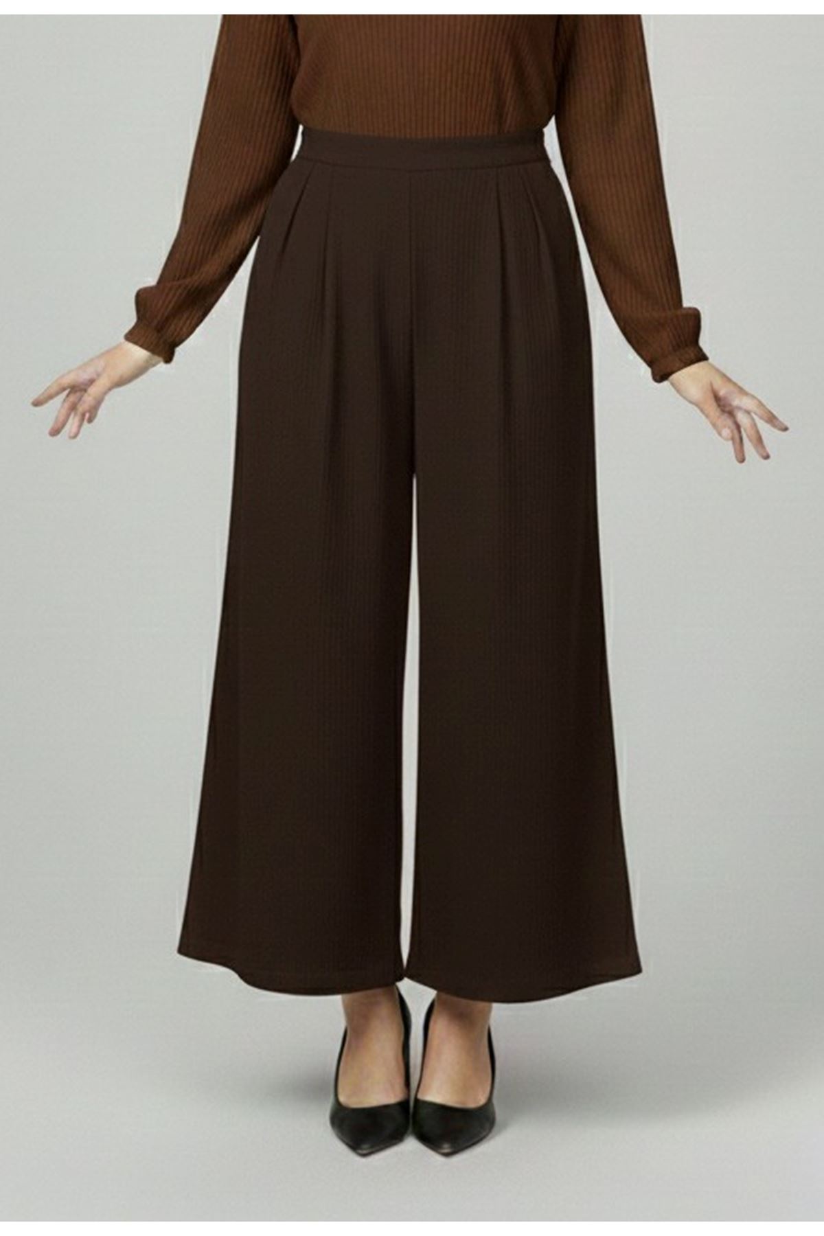 Cırt Bantlı Scuba Krep Pantolon-Kahve