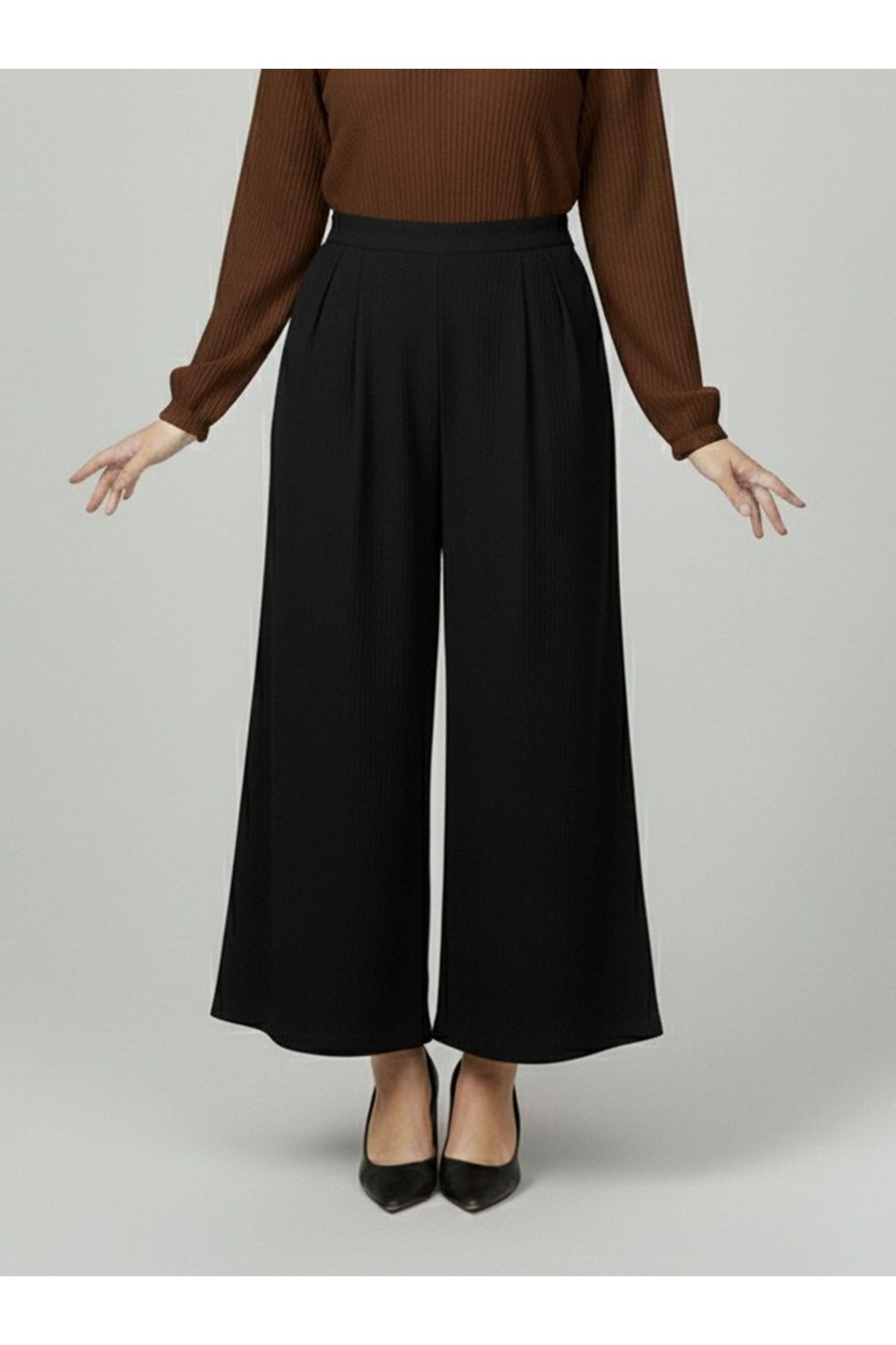 Cırt Bantlı Scuba Krep Pantolon-Siyah