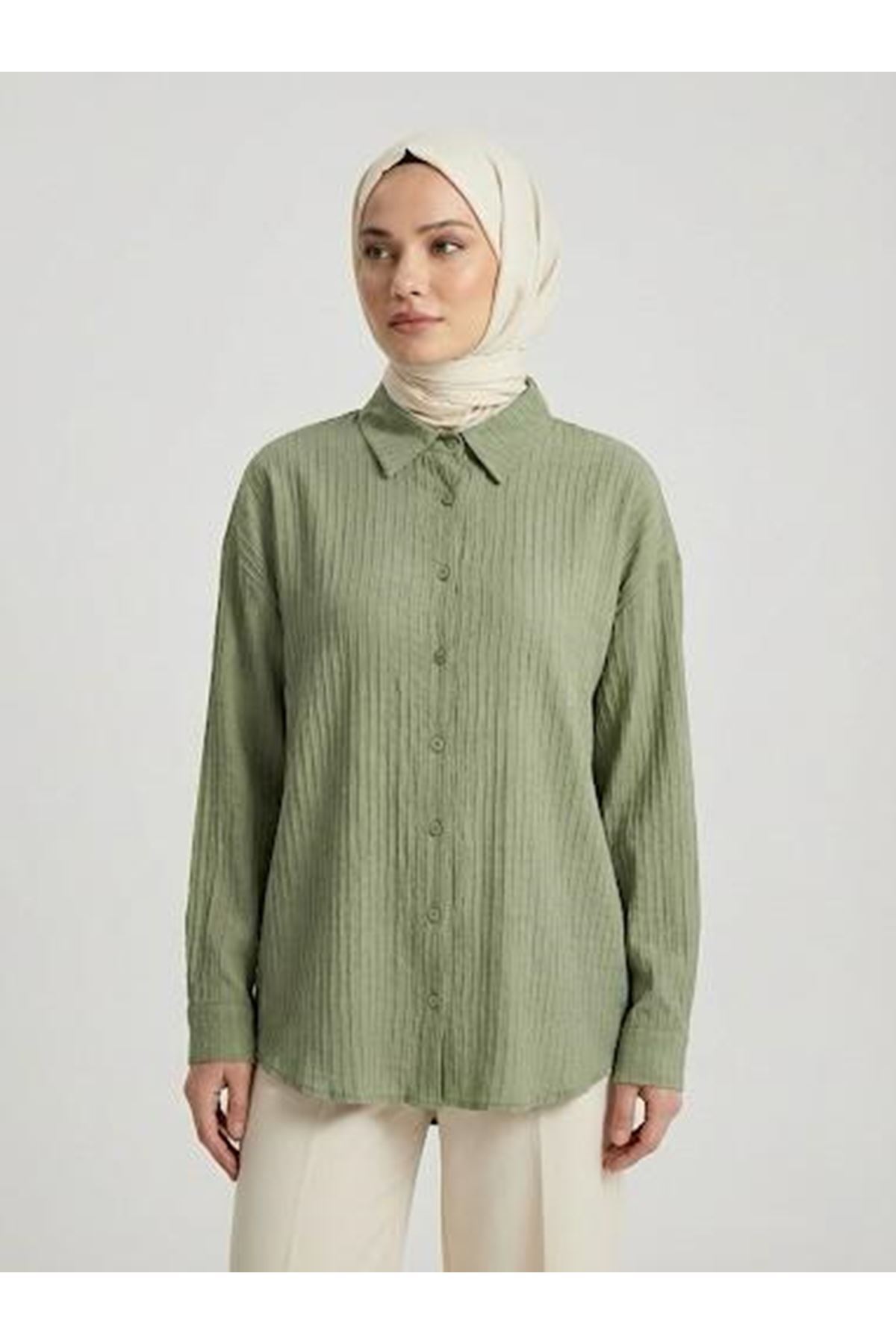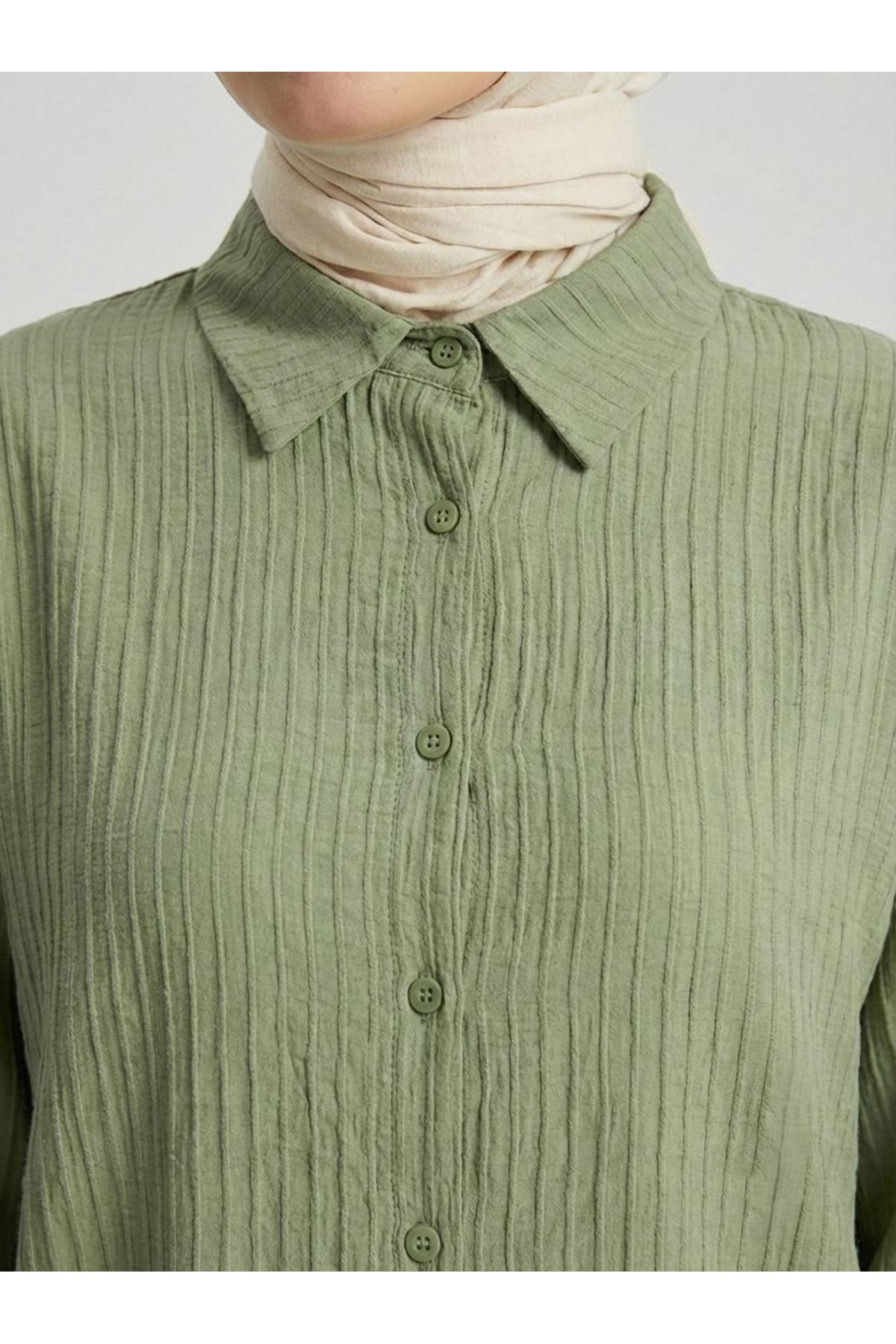 Çizgi Raporlu Keten Tunik-Haki