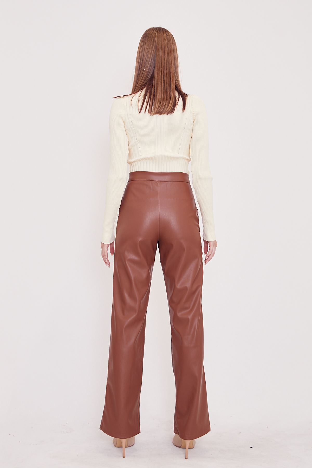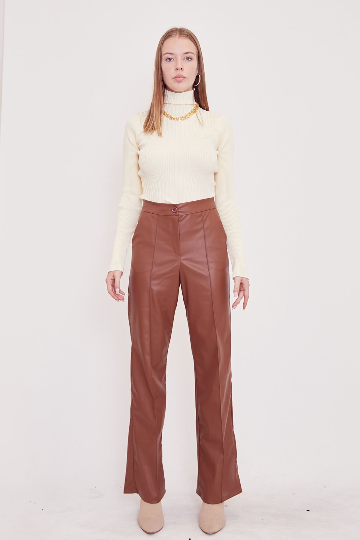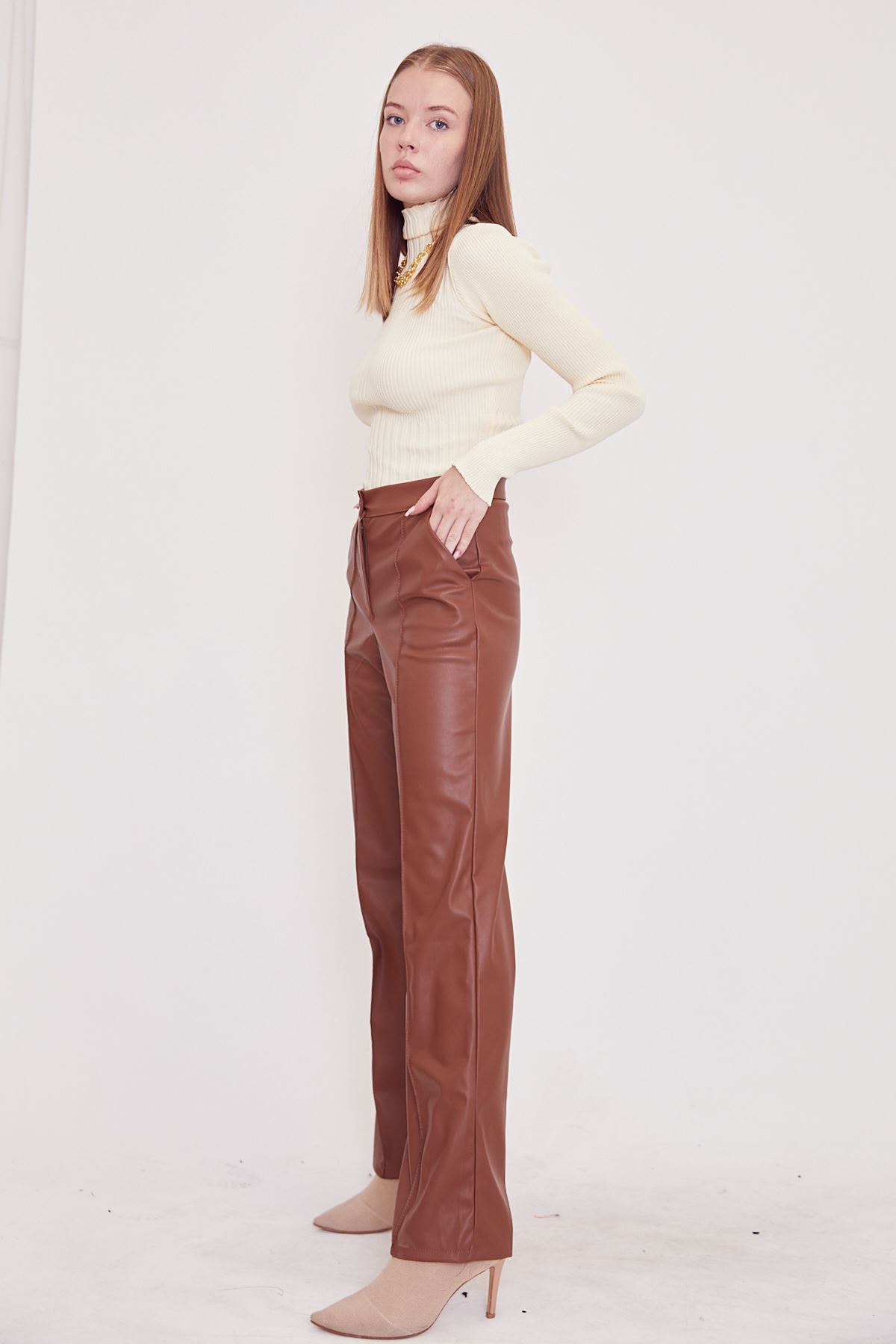 Deri Palazzo Pantolon-Kahve