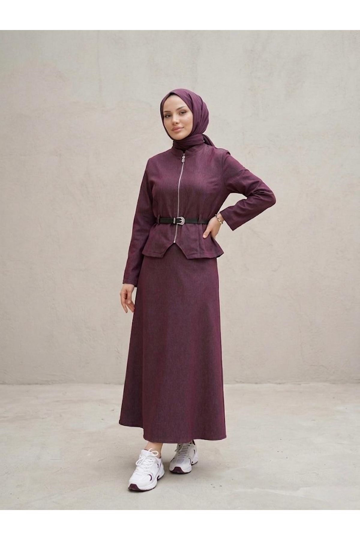 Fermuar Detay Etekli Takım-Bordo