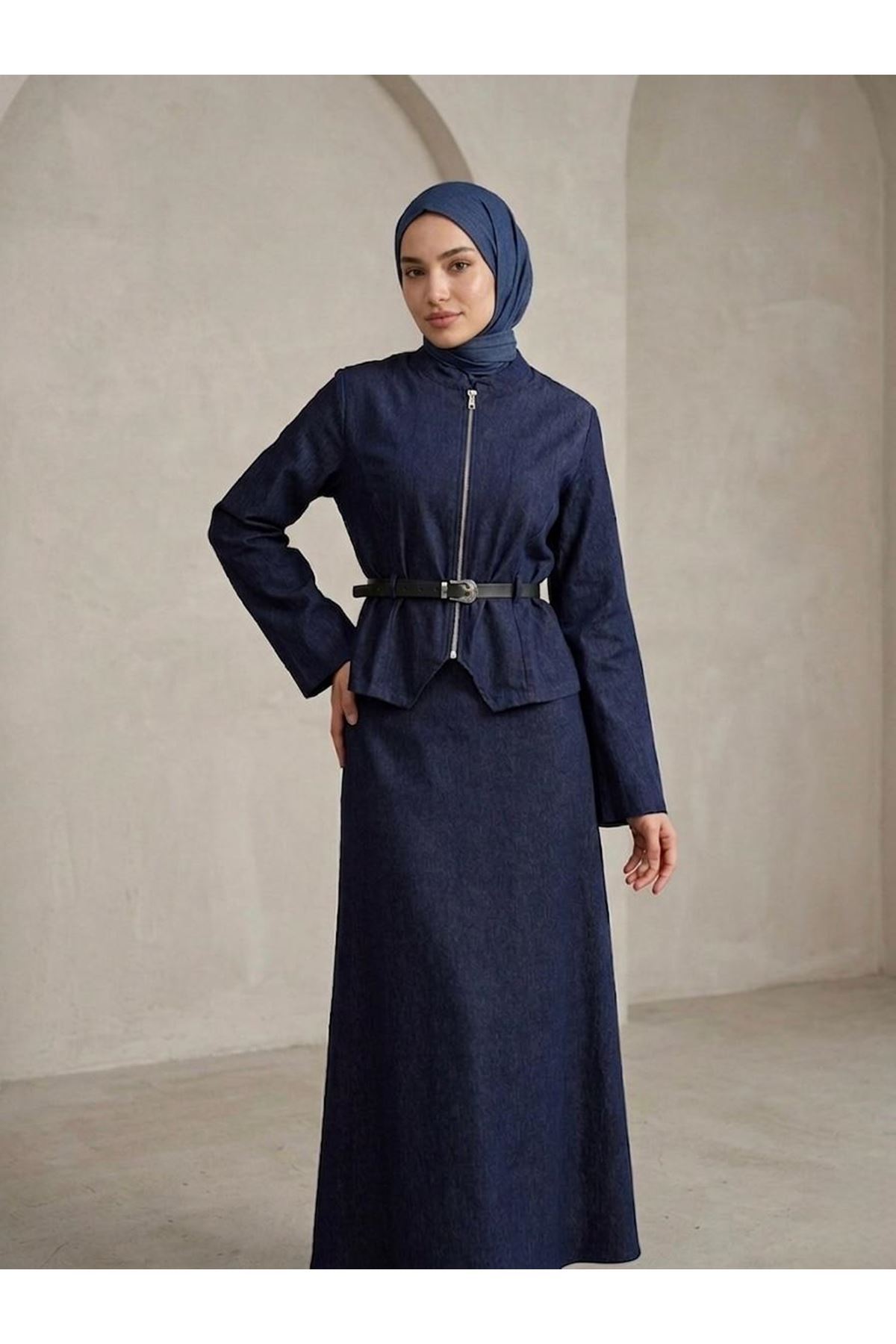 Fermuar Detay Etekli Takım-Lacivert