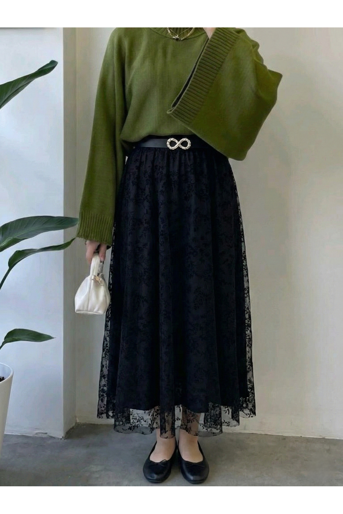 Flok Baskı Etek-Siyah