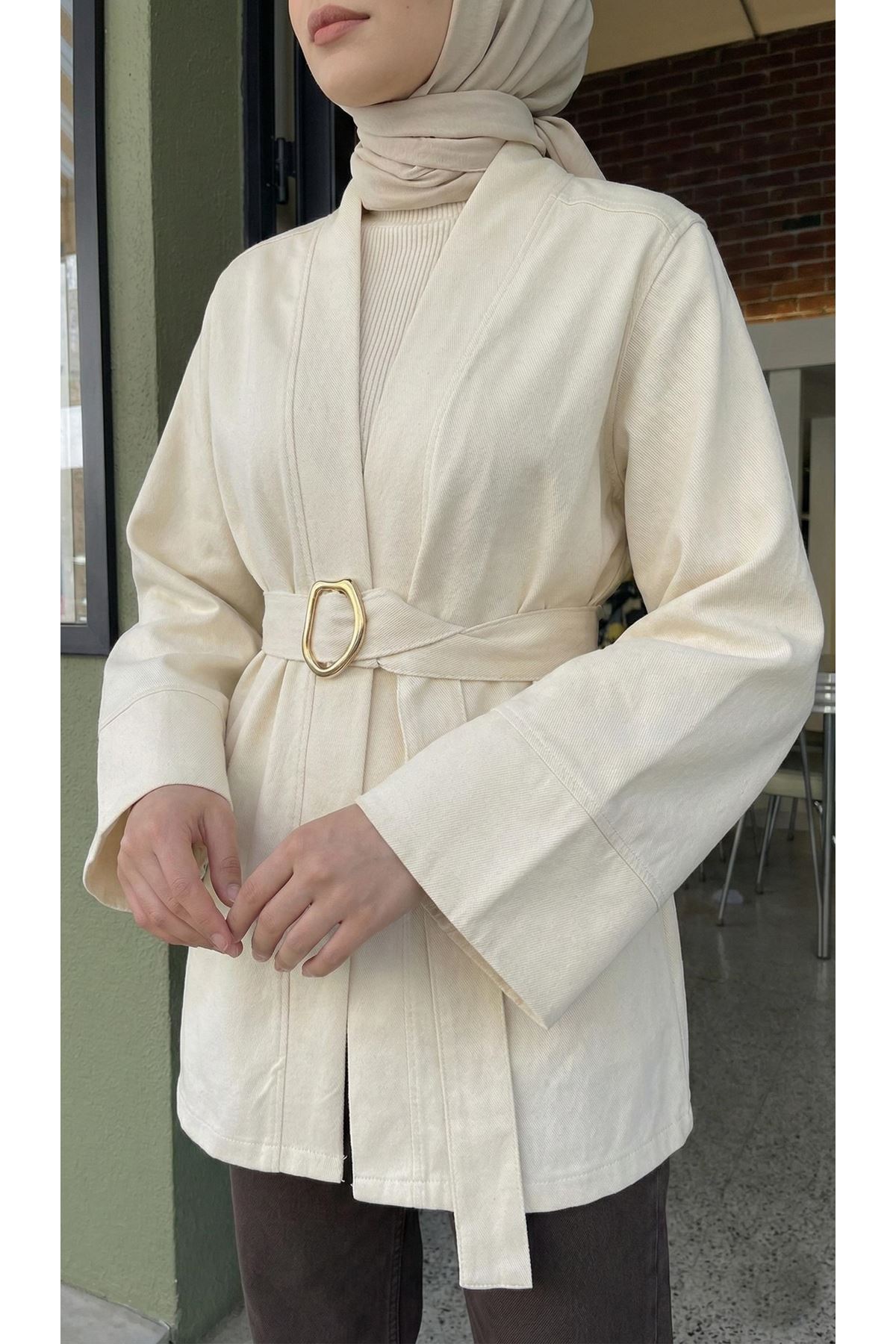 Geniş Manşet Kuşak Detay Ceket