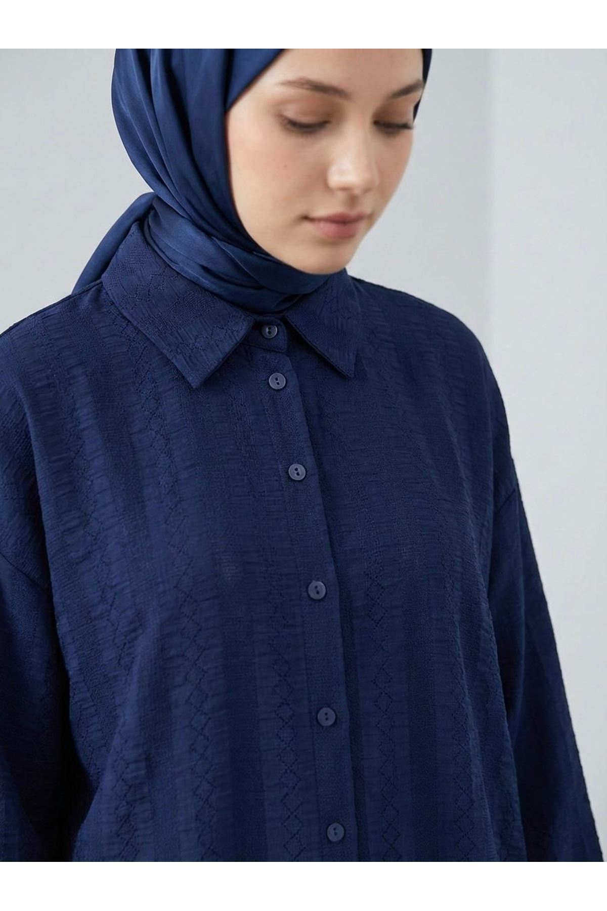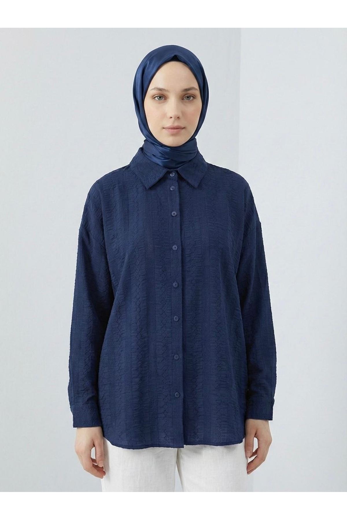 Geniş Raporlu Jakar Keten Tunik-Lacivert
