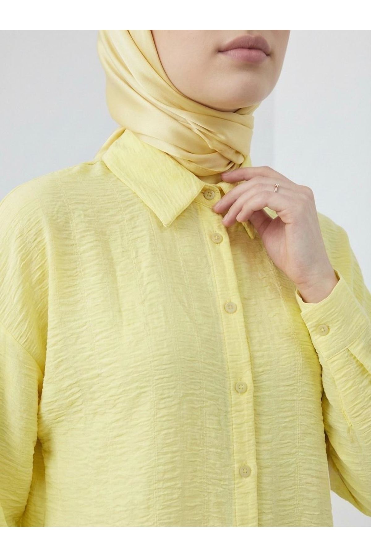 Geniş Raporlu Jakar Keten Tunik-Sarı