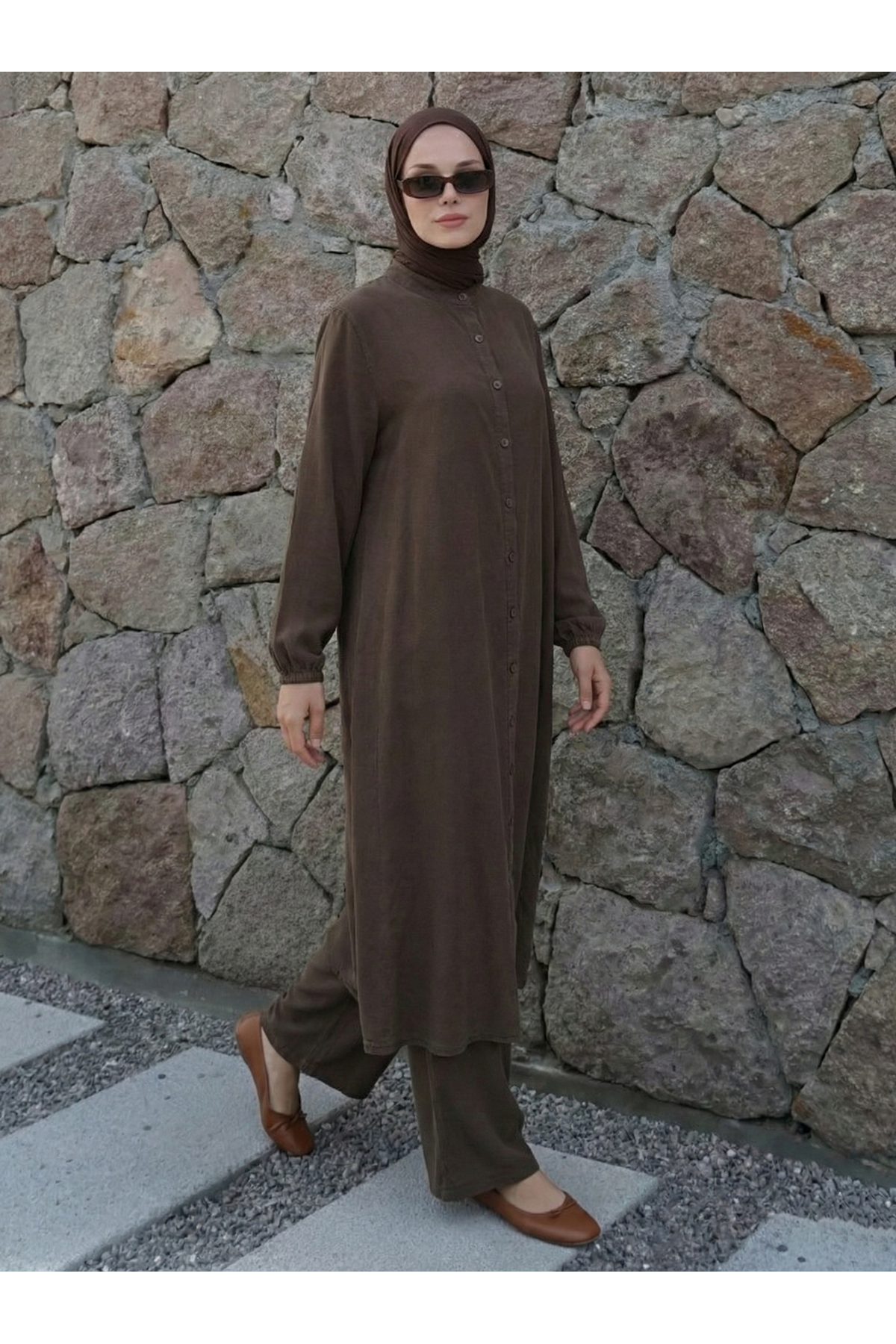 Hakim Yaka Uzun Pantolonlu Takım-Kahve