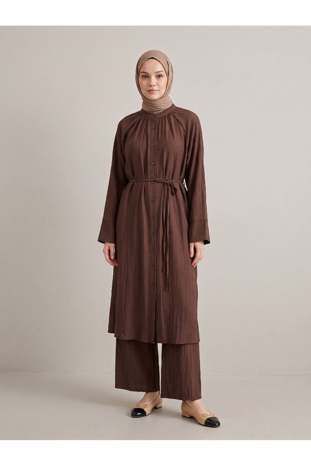 Hakim Yaka Uzun Pantolonlu Takım-Kahve
