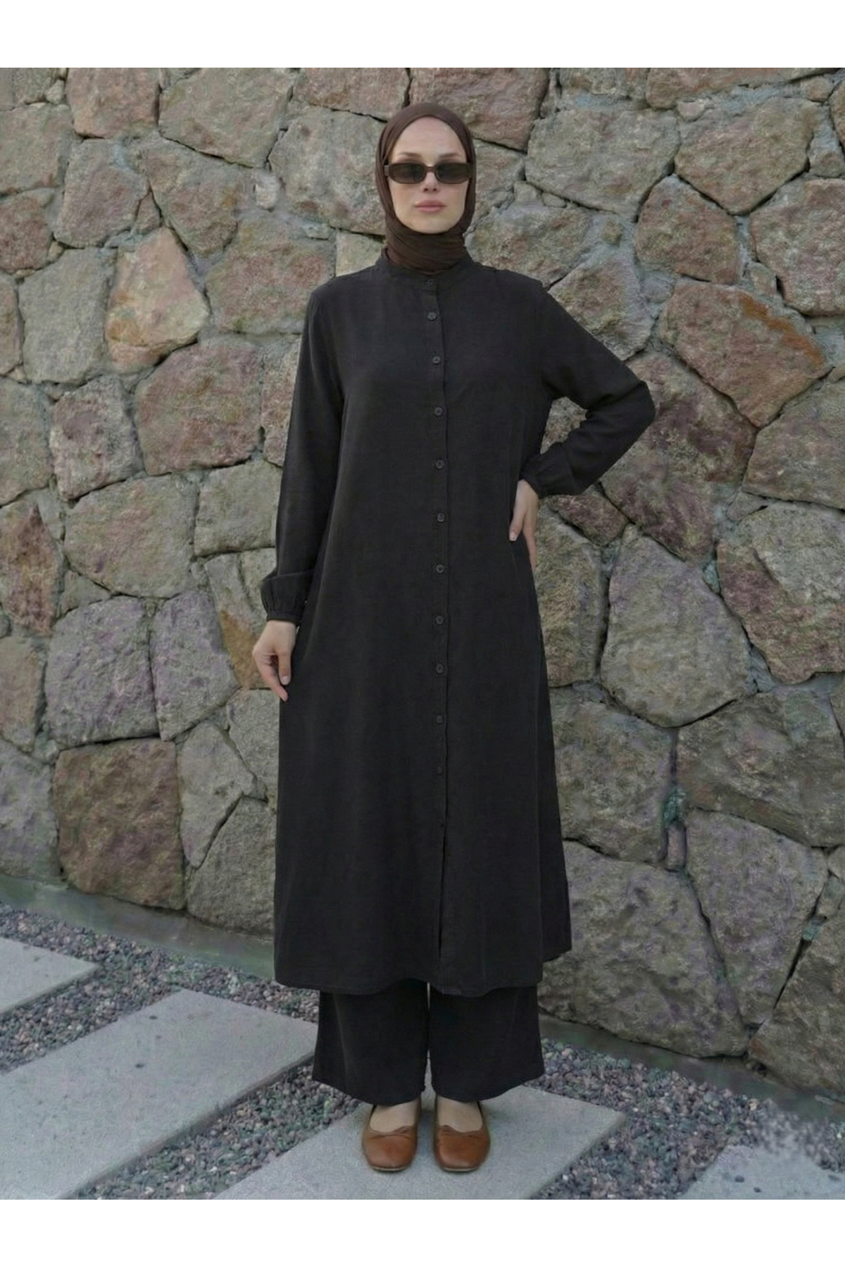 Hakim Yaka Uzun Pantolonlu Takım-Siyah