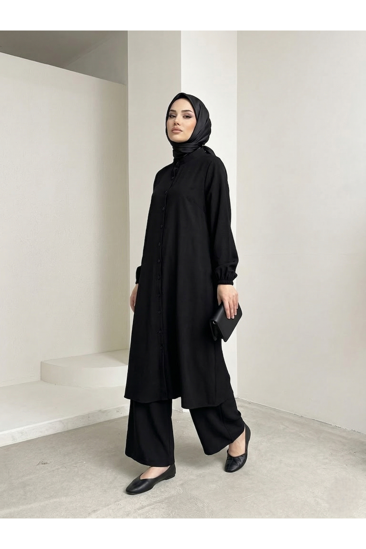 Hakim Yaka Uzun Pantolonlu Takım-Siyah
