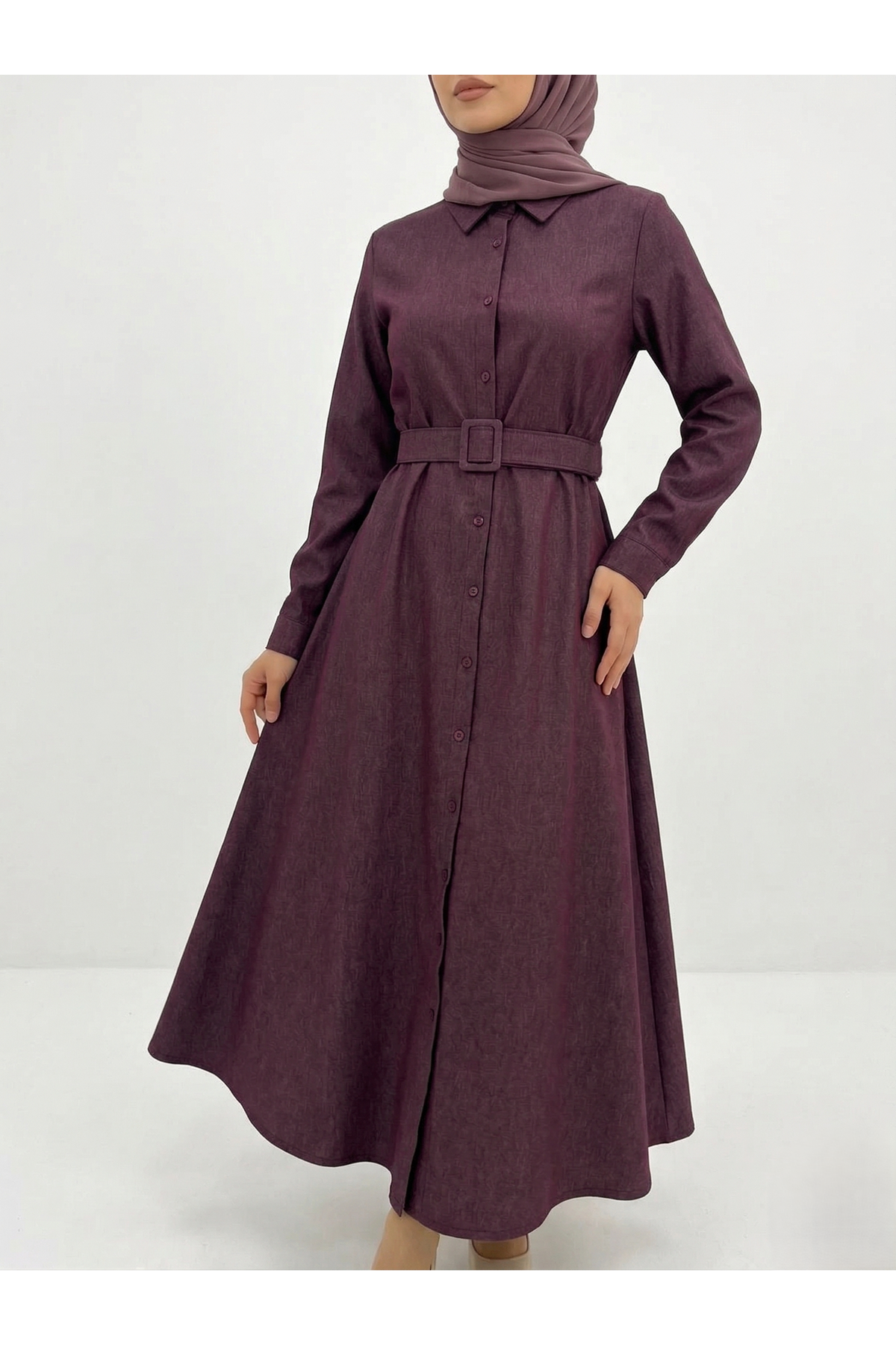 Kaplama Kemer Detay Patlı Elbise-Bordo
