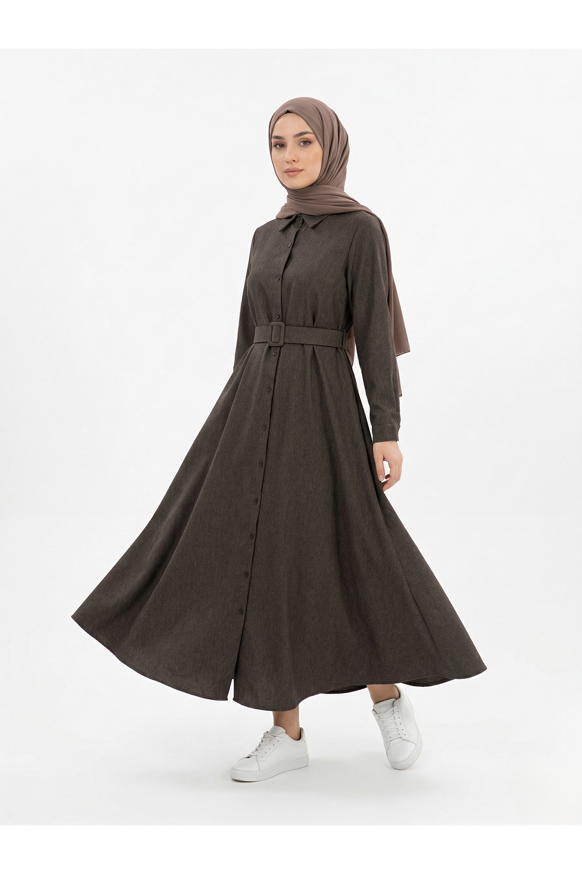 Kaplama Kemer Detay Patlı Elbise
