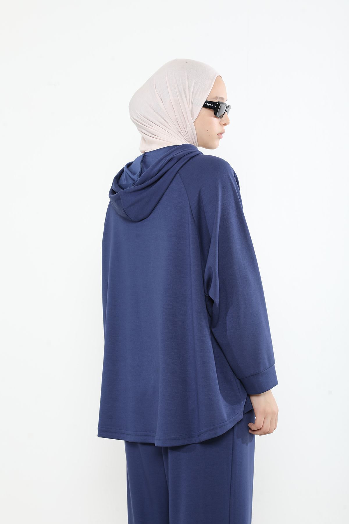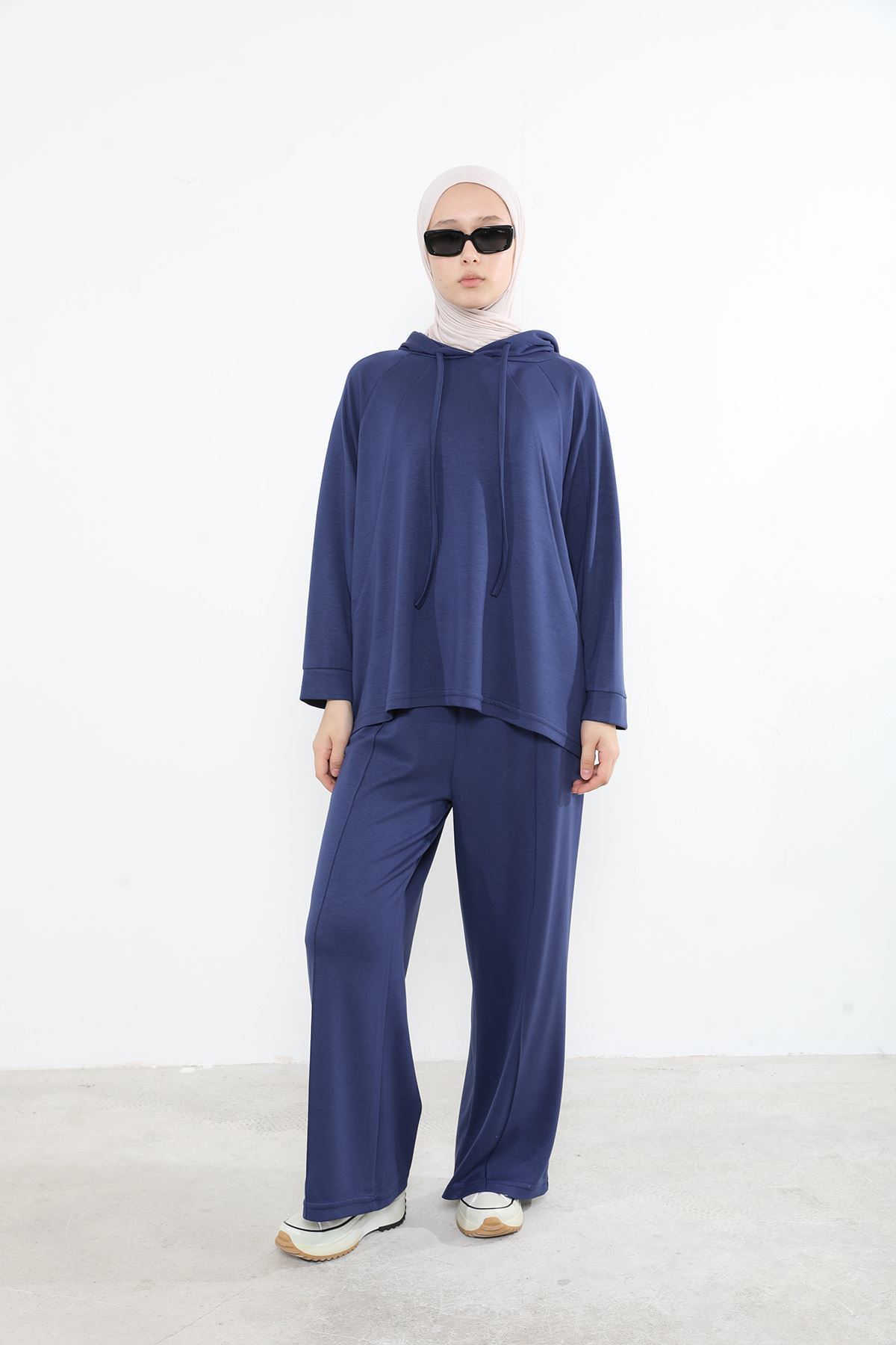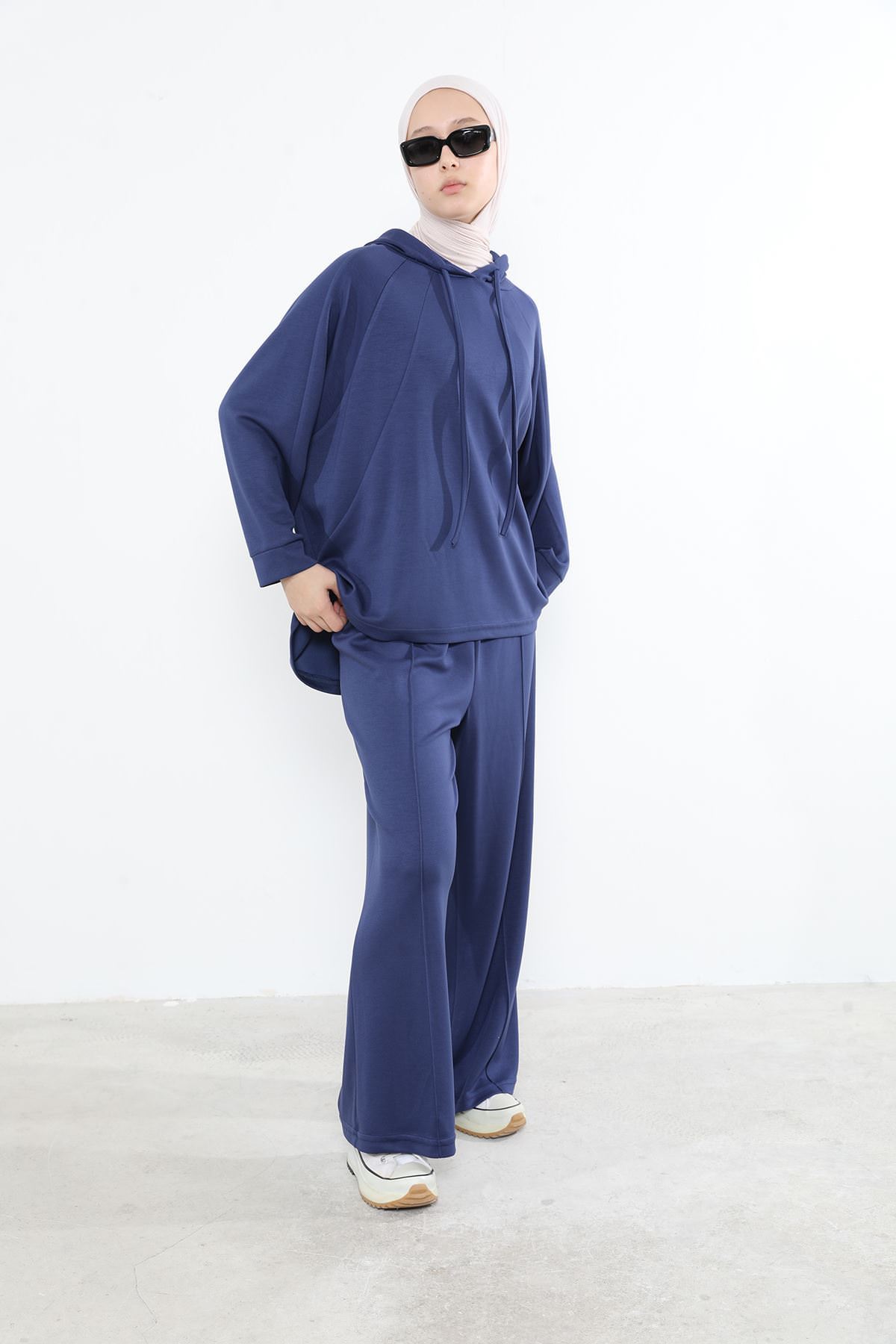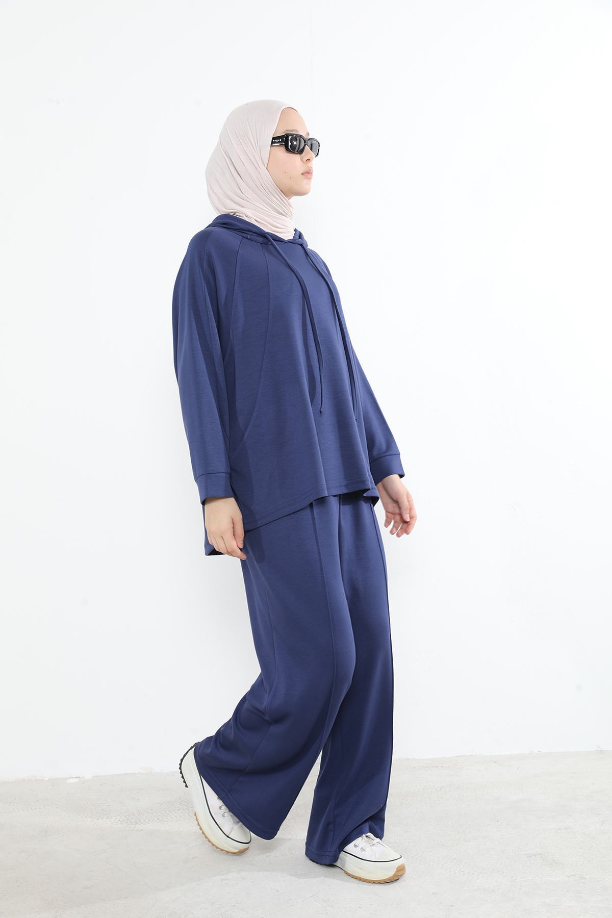 Kapşon Detay Pantolonlu Takım-Lacivert