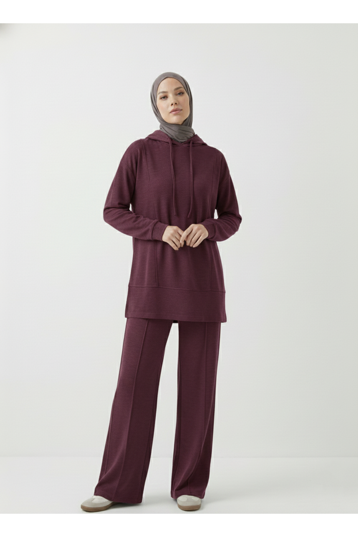 Kapşonlu Ön Parçalı Pantolonlu Takım-Bordo