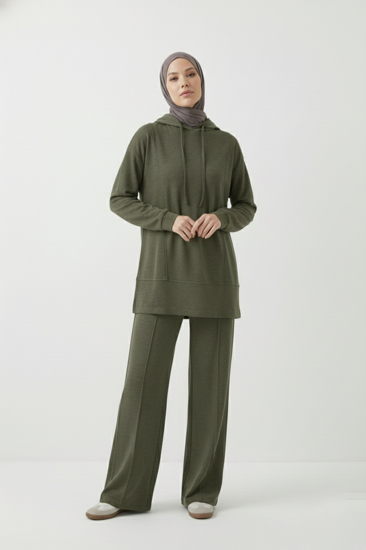 Kapşonlu Ön Parçalı Pantolonlu Takım