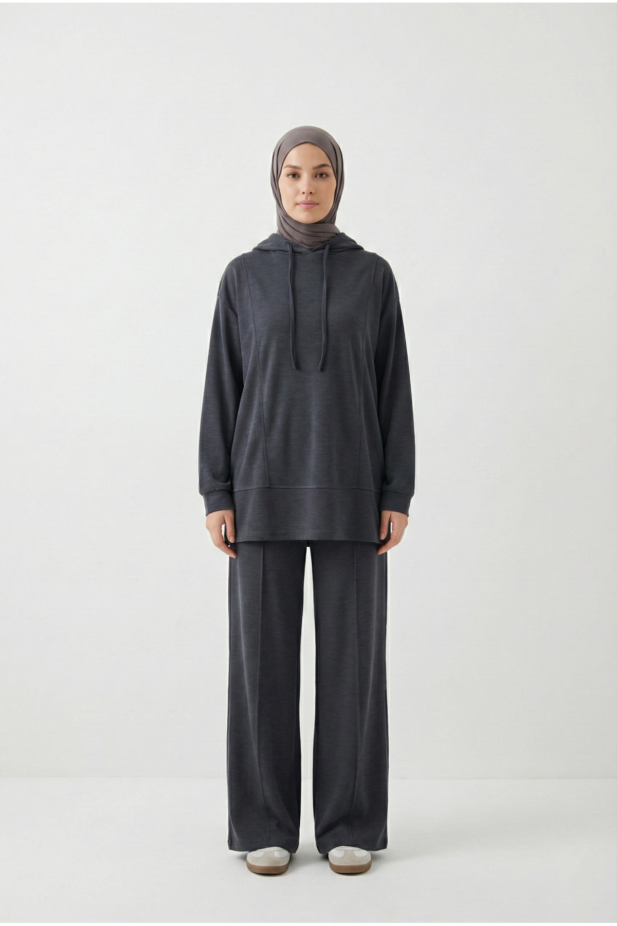 Kapşonlu Ön Parçalı Pantolonlu Takım