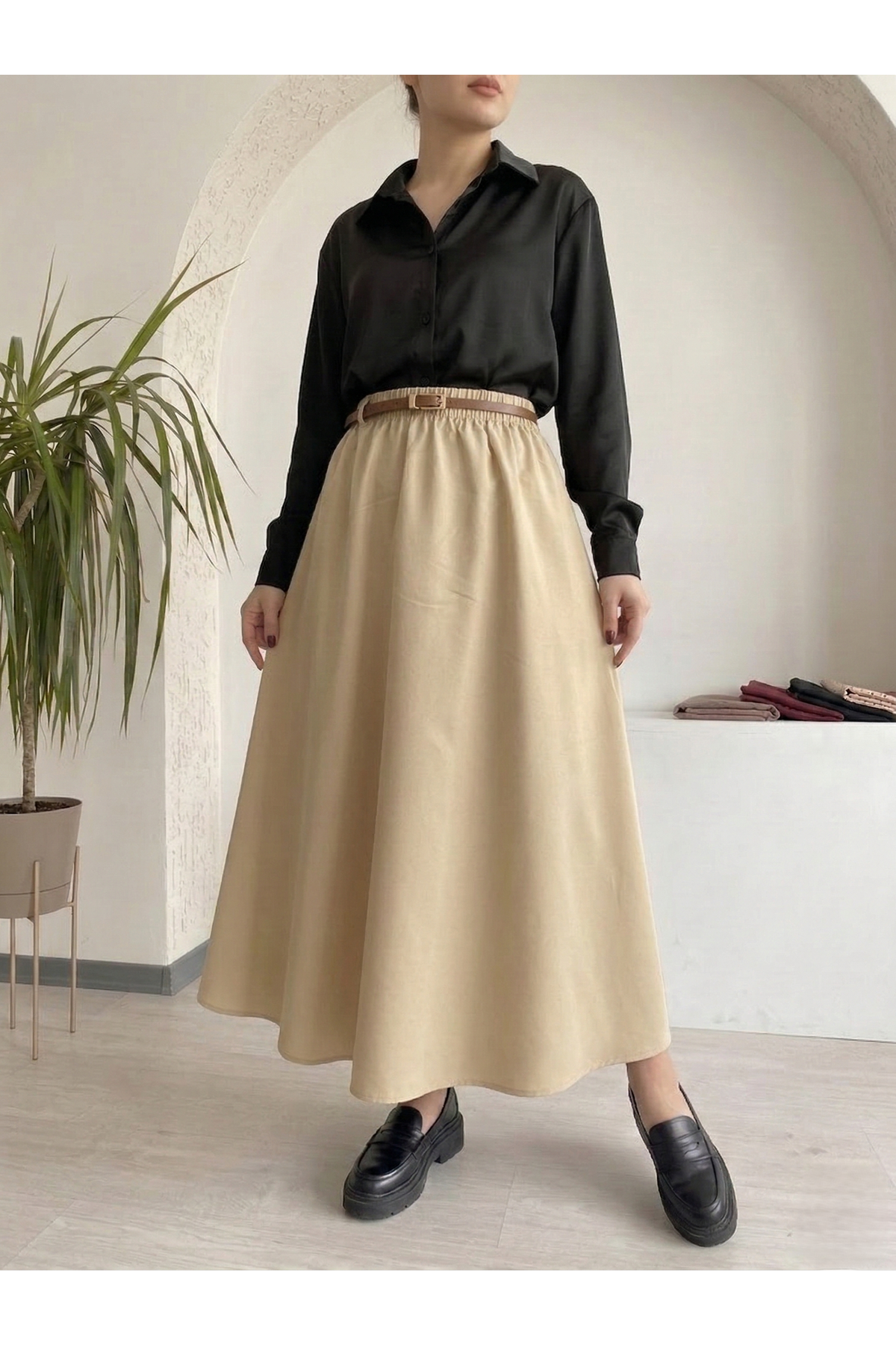Kemer Detay Terikoton Etek-Bej