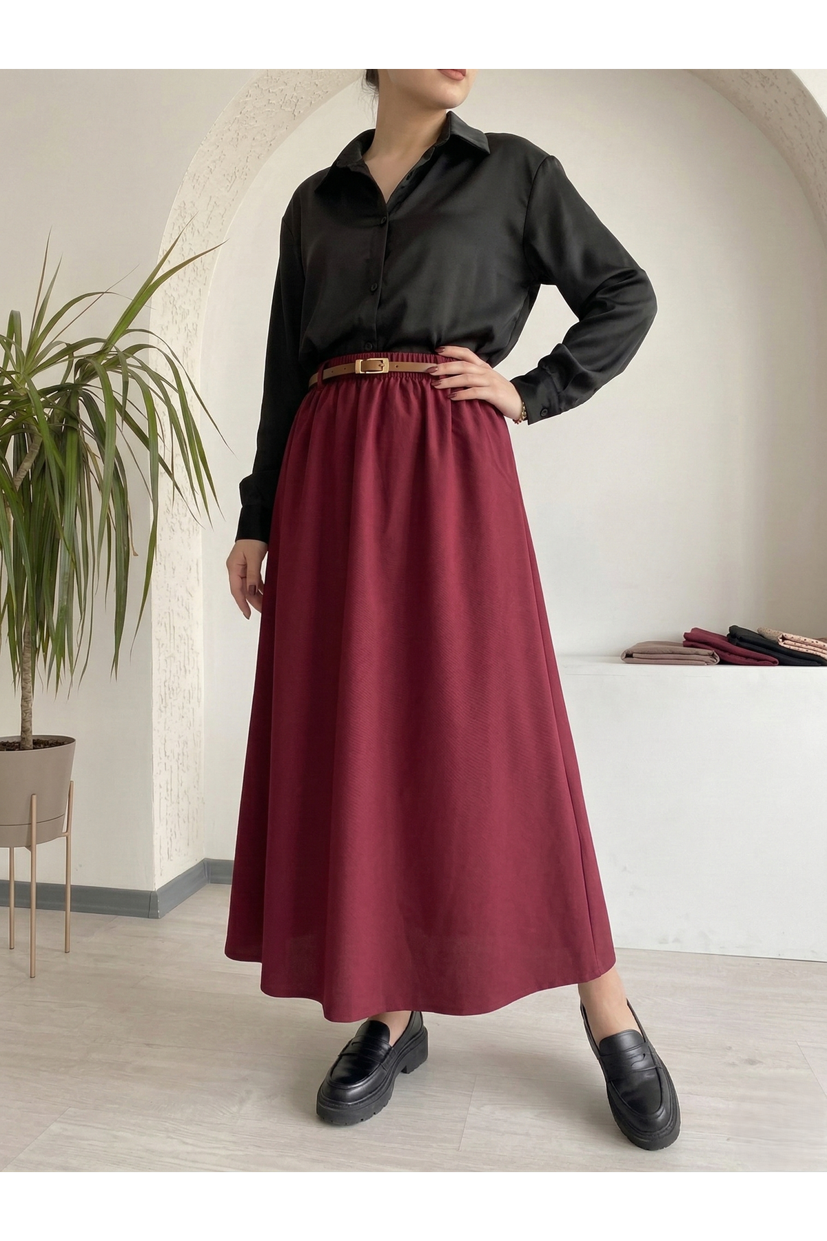 Kemer Detay Terikoton Etek-Bordo